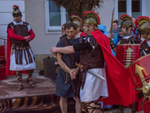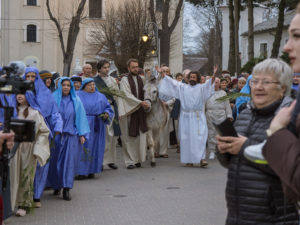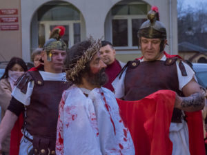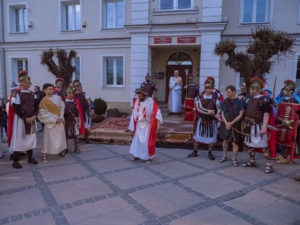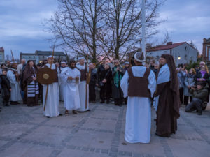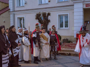 W role ludu jerozolimskiego wcielili się mieszkańcy gminy Urzędów, za co serdecznie dziękujemy. Słowa uznania należą się druhom OSP z terenu gminy. Dzięki ich zaangażowaniu urzędowskie Misterium Męki Pańskiej miało charakter wyjątkowy. Dziękujemy również wszystkim za tak liczny udział.