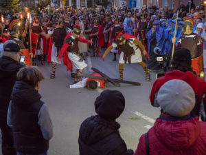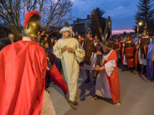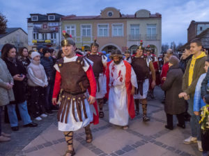 W Niedzielę Palmową po raz piąty w Urzędowie miało miejsce Misterium Męki Pańskiej. To wzruszające i realistyczne widowisko rozpoczęło się od powitania Jezusa przybywającego na osiołku w otoczeniu 12 apostołów na Urzędowski Rynek, który na czas wydarzenia stał się Jerozolimą. Tryumfalne przybycie Jezusa, witanego gałązkami palmowymi i okrzykami „Hosanna, hosanna”, wkrótce zmienia się w miejsce jego męki i śmierci. Ostatnia wieczerza, zdrada Judasza, oddanie Jezusa w ręce arcykapłanów żydowskich, faryzeuszy i Rzymian, zaparcie się Piotra, biczowanie i skazanie na śmierć przez Piłata, to przejmujące sceny przed Drogą Krzyżową. Jezus z krzyżem na ramionach wyrusza na Golgotę (wały urzędowskie) pod eskortą żołnierzy rzymskich, znęcających się nad Nim z największym okrucieństwem. Po drodze spotyka swoją Matkę, Weronikę, kobiety płaczące. Trzy razy upada pod ciężarem krzyża. Szymon z Cyreny pomaga Jezusowi dźwigać krzyż.