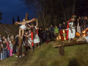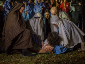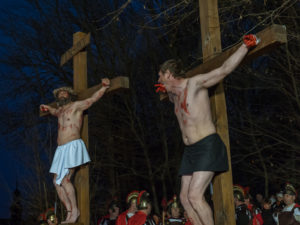 Na koniec Jezus został do krzyża przybity, na którym umiera. Po lewej i po prawej stronie ukrzyżowano wraz z nim dwóch łotrów. Ostatnia scena to zdjęcie Jezusa z krzyża i złożenie jego ciała do grobu.