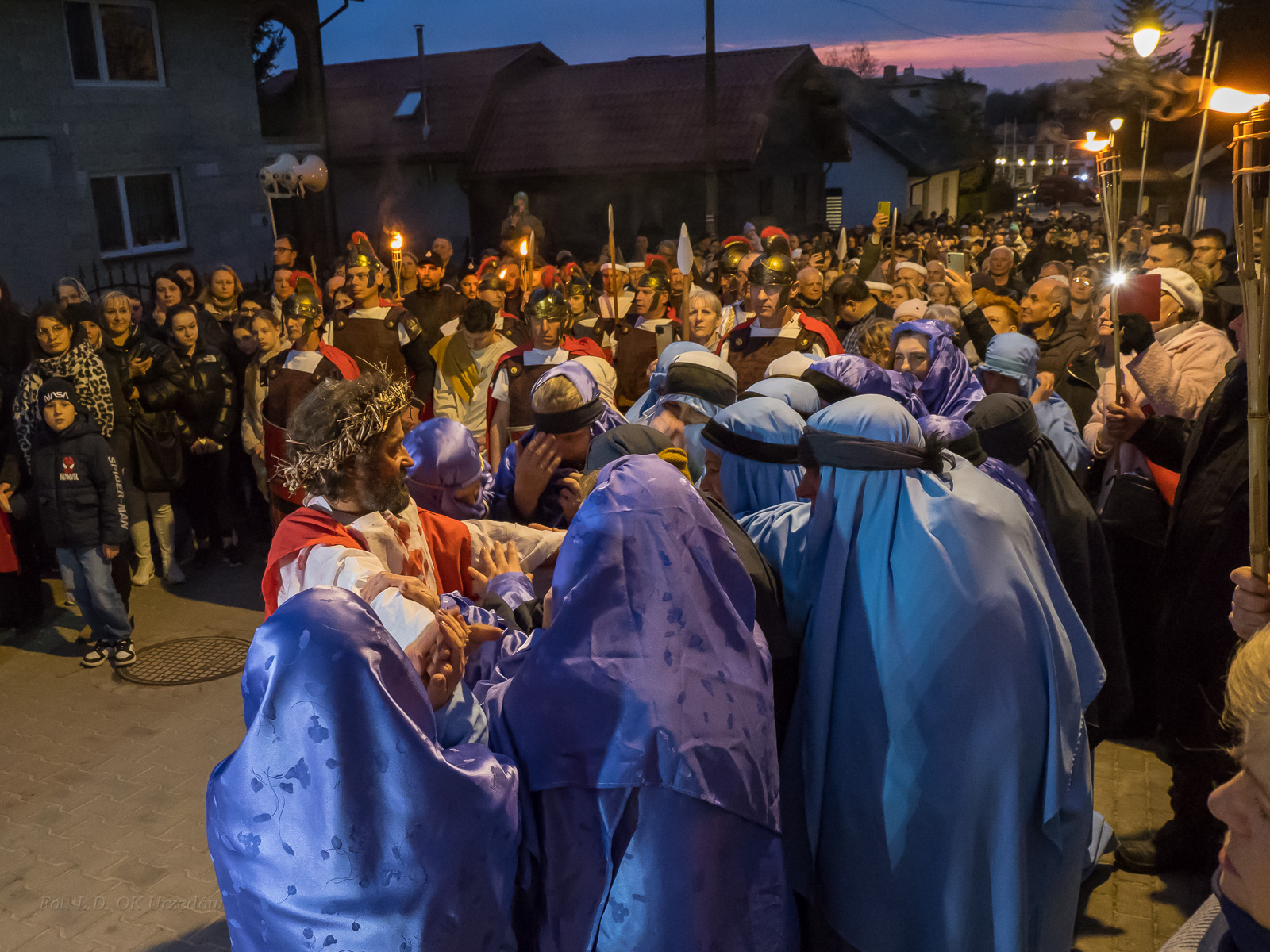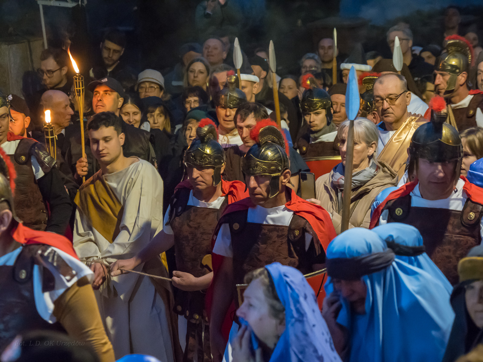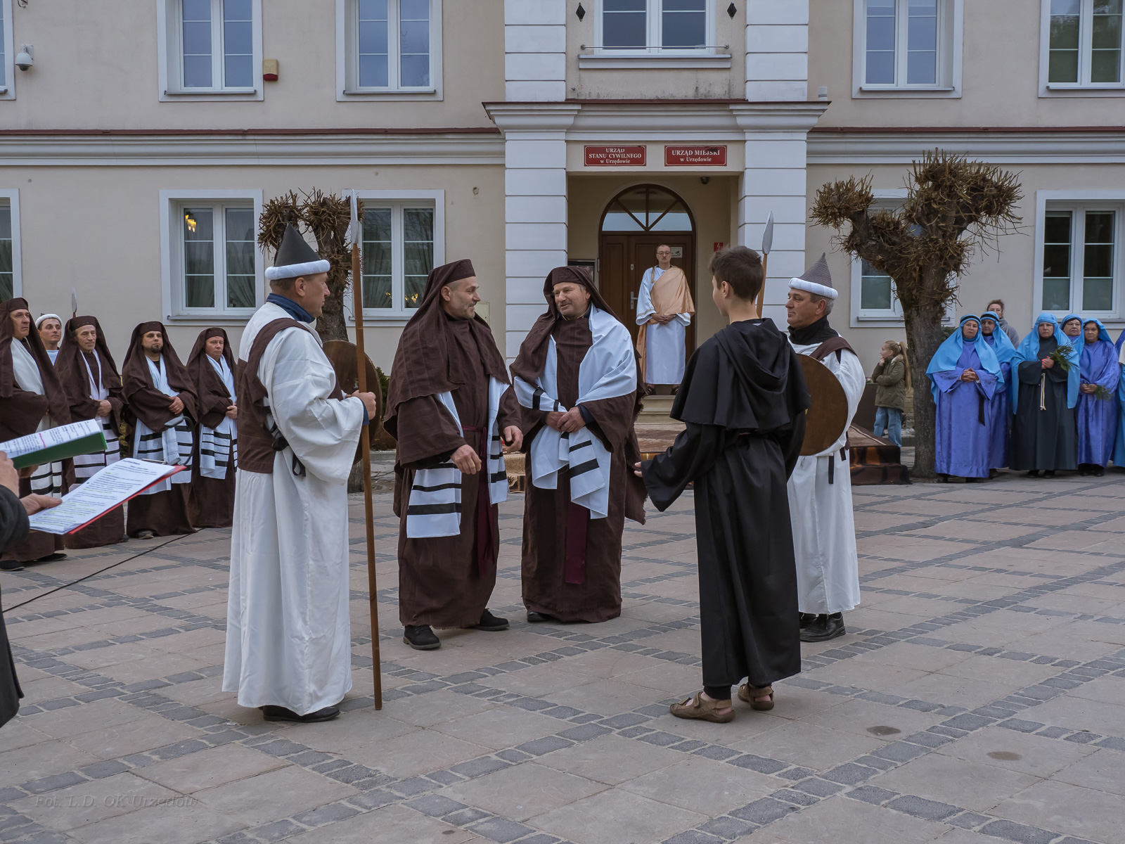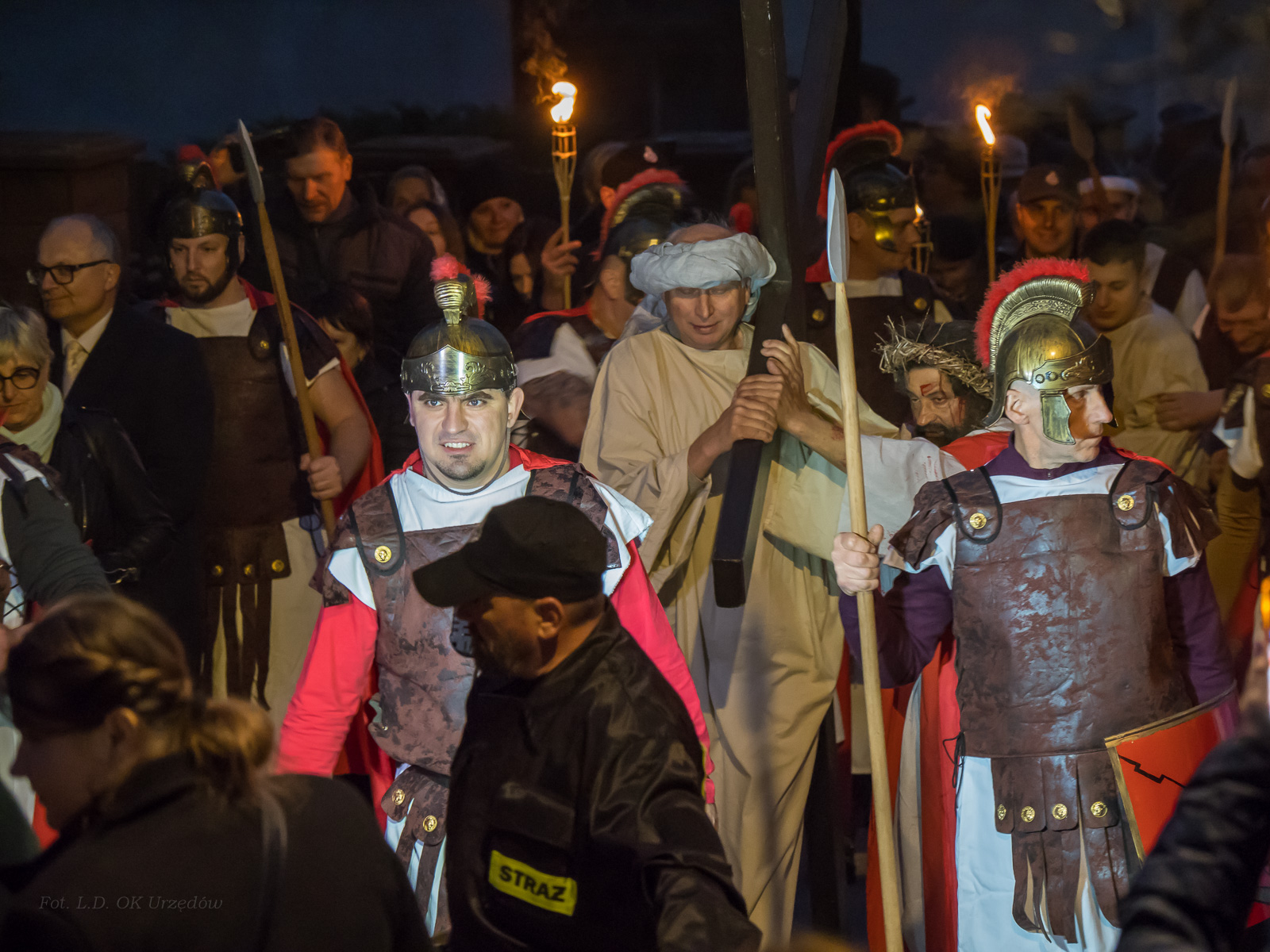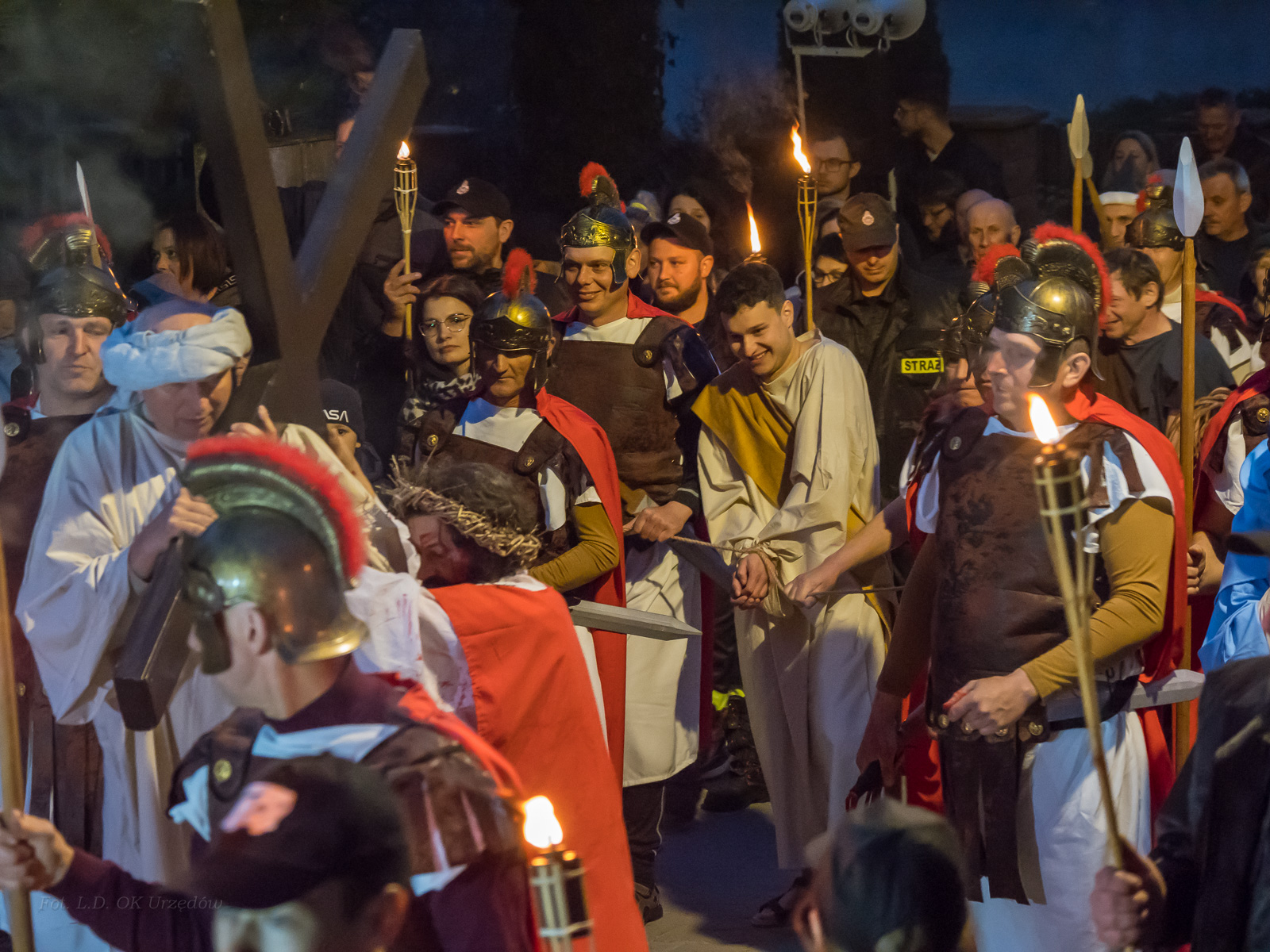 W role ludu jerozolimskiego wcielili się mieszkańcy gminy Urzędów, za co serdecznie dziękujemy. Słowa uznania należą się druhom OSP z terenu gminy. Dzięki ich zaangażowaniu urzędowskie Misterium Męki Pańskiej miało charakter wyjątkowy. Dziękujemy również wszystkim za tak liczny udział.