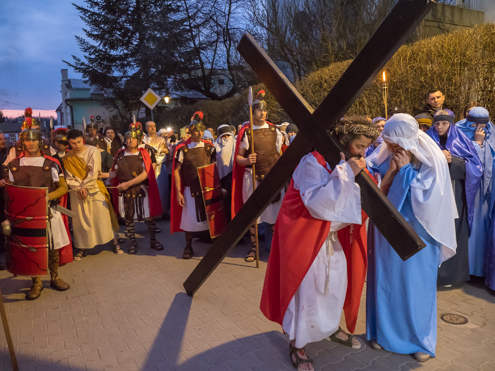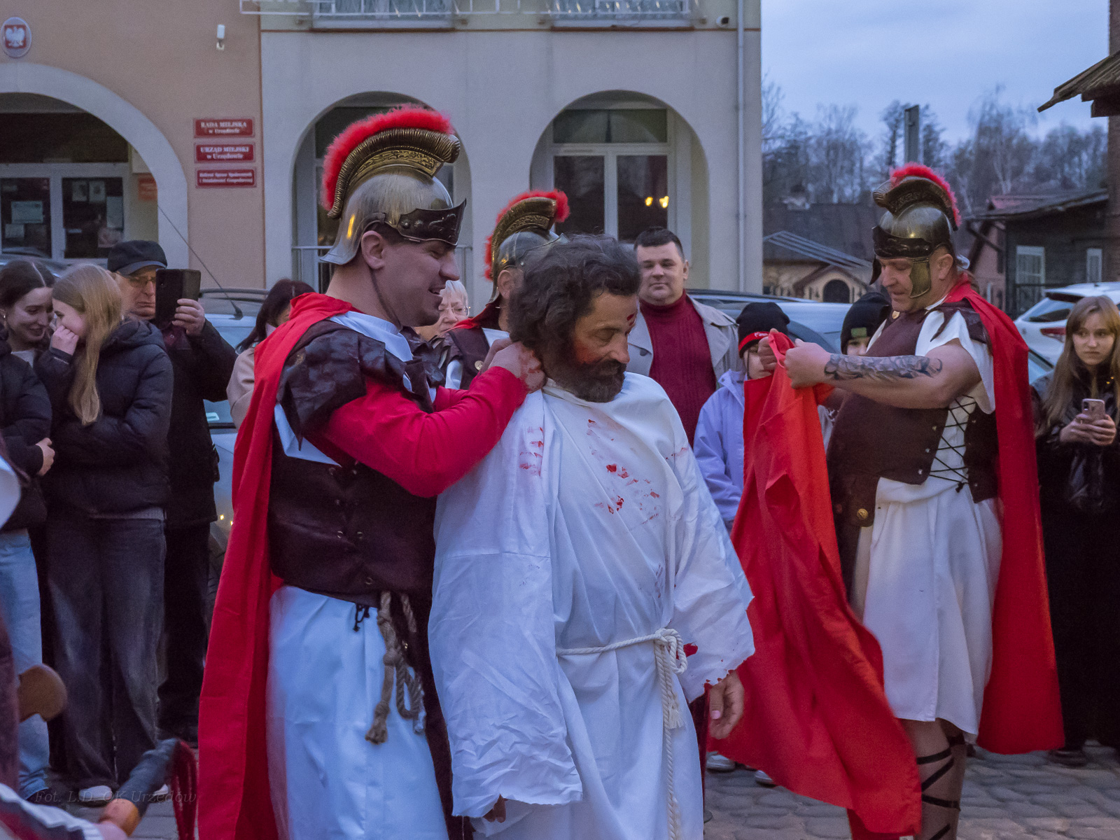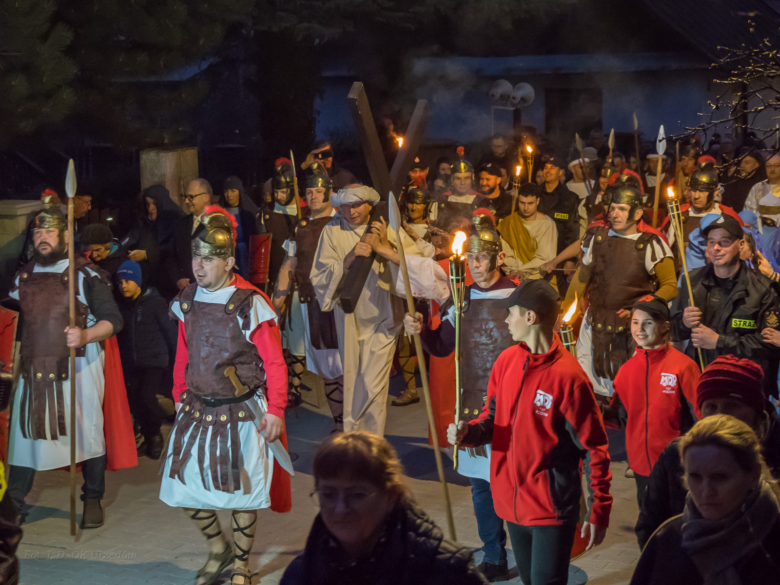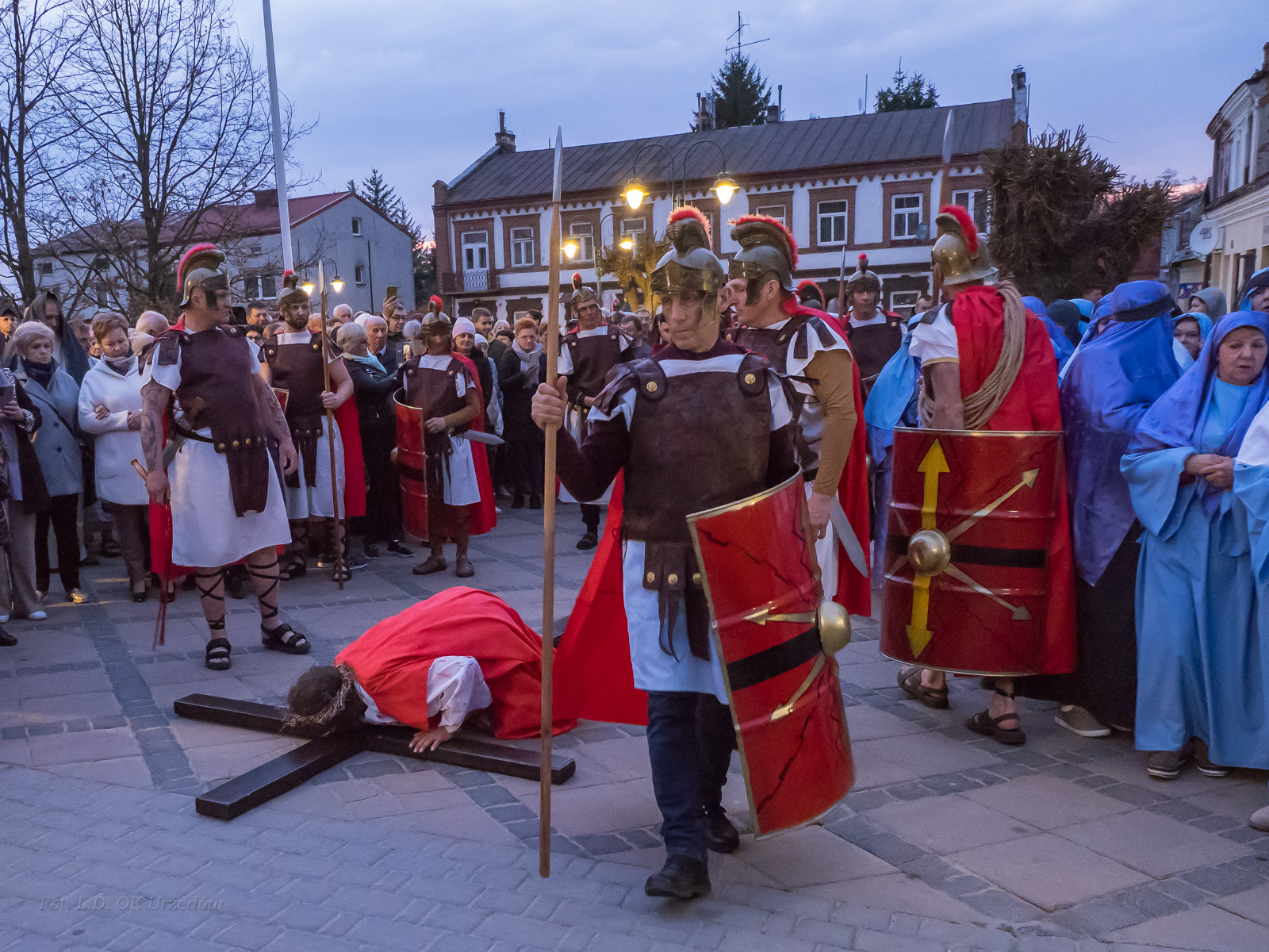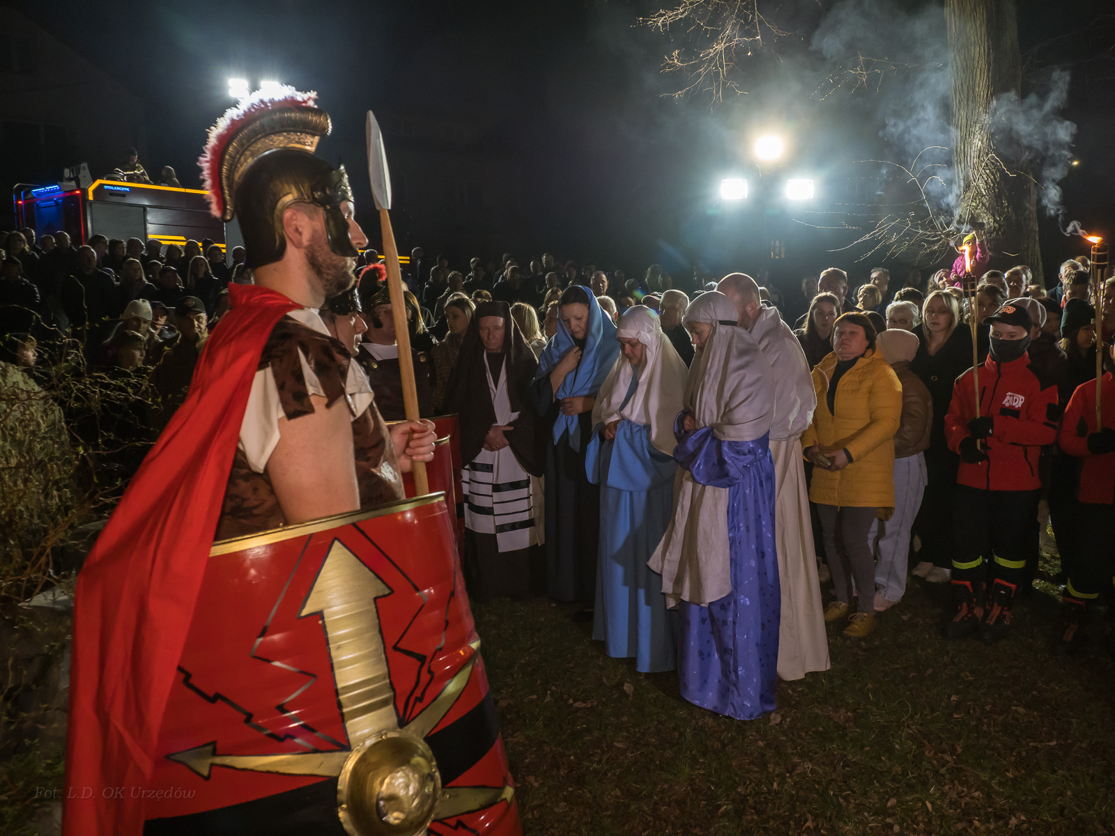 W role ludu jerozolimskiego wcielili się mieszkańcy gminy Urzędów, za co serdecznie dziękujemy. Słowa uznania należą się druhom OSP z terenu gminy. Dzięki ich zaangażowaniu urzędowskie Misterium Męki Pańskiej miało charakter wyjątkowy. Dziękujemy również wszystkim za tak liczny udział.