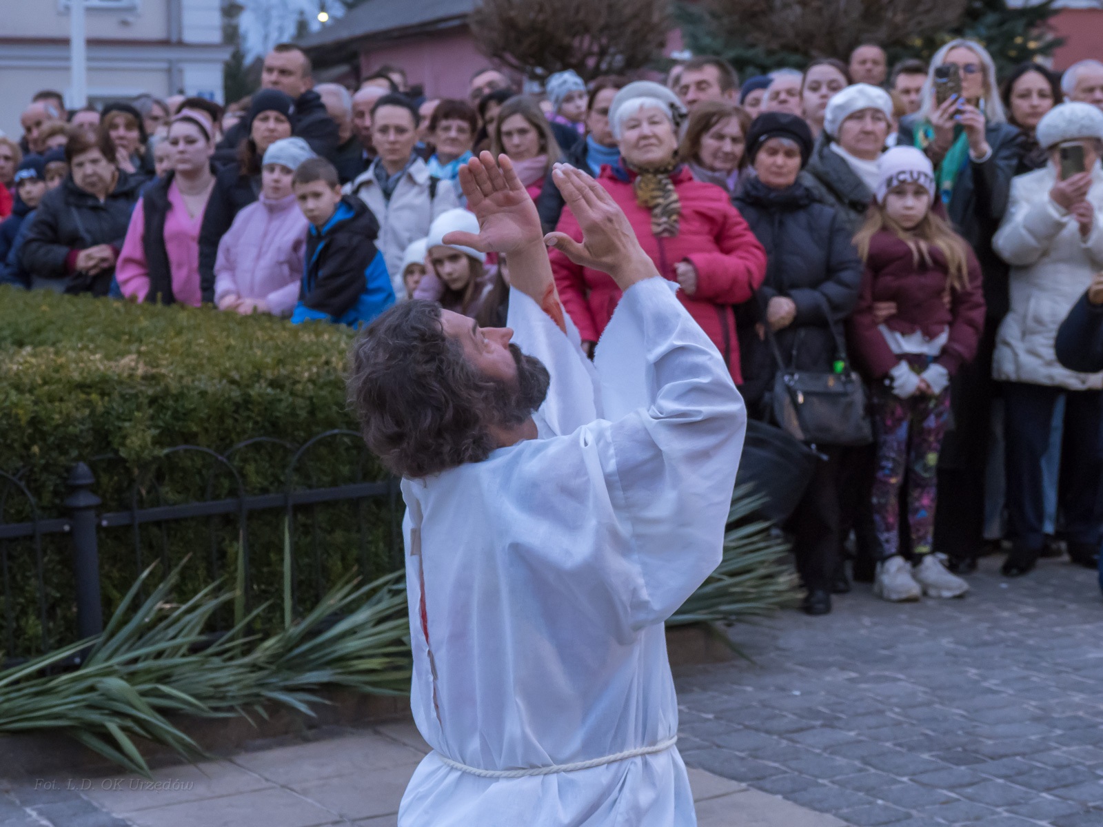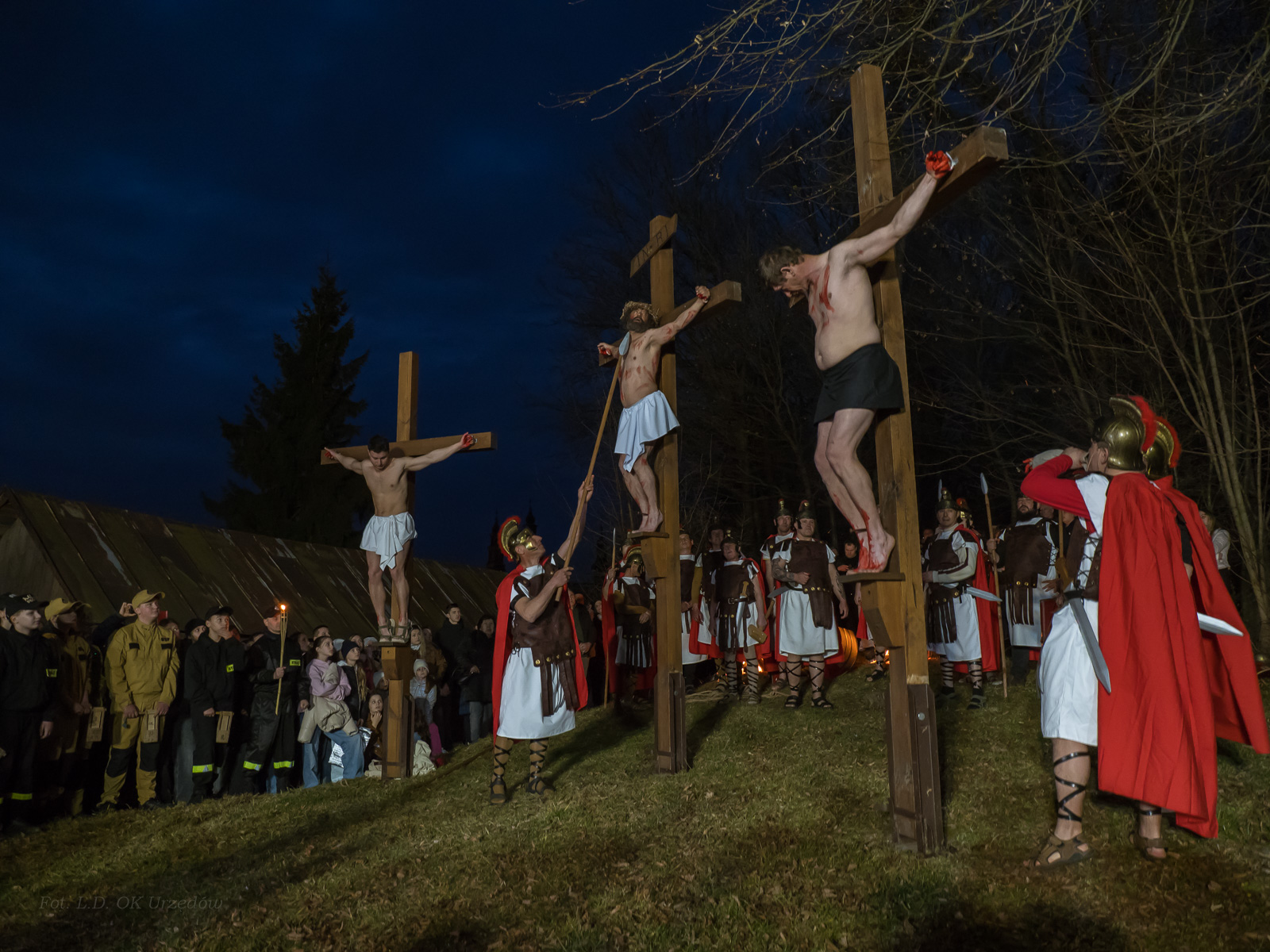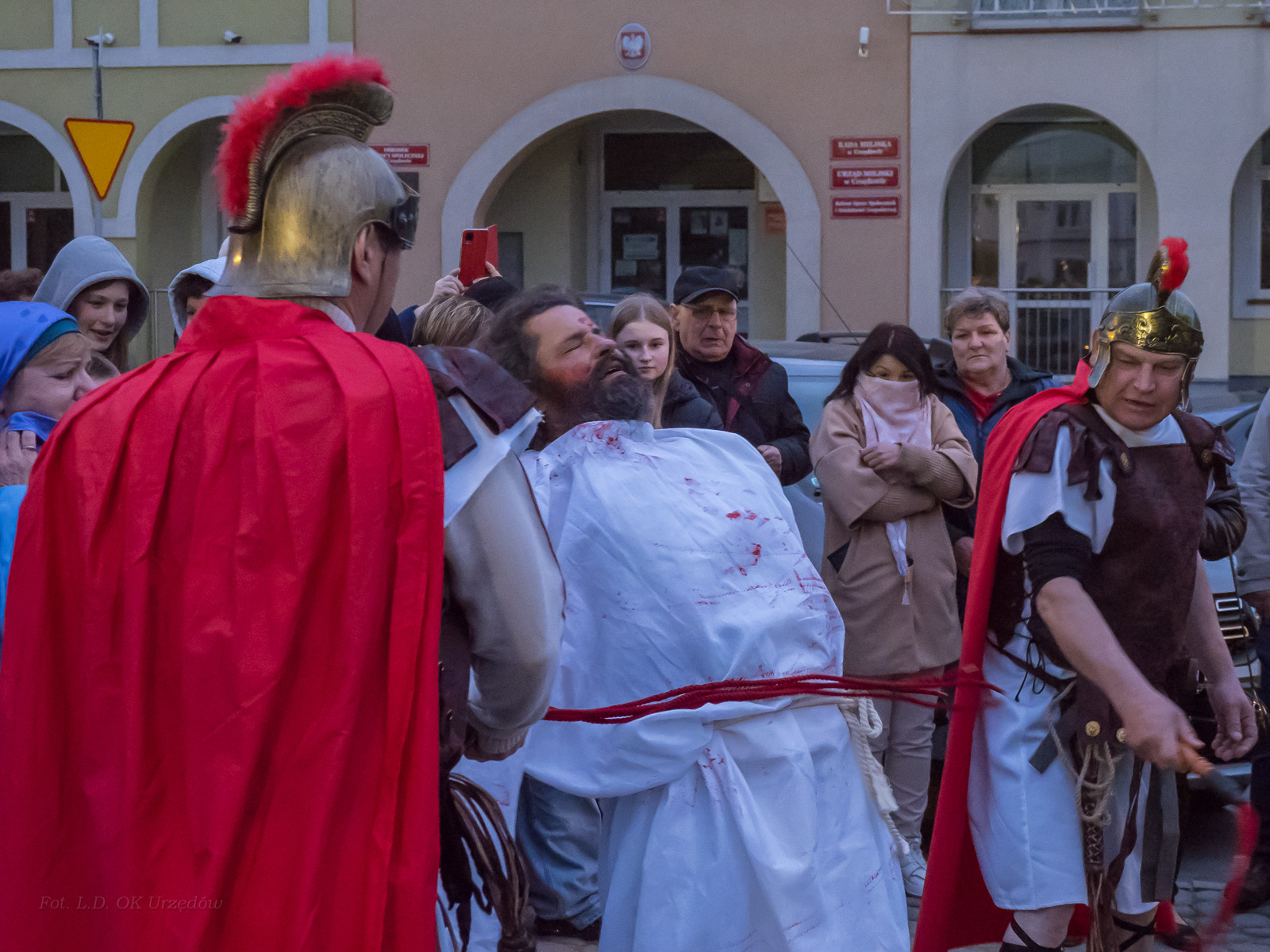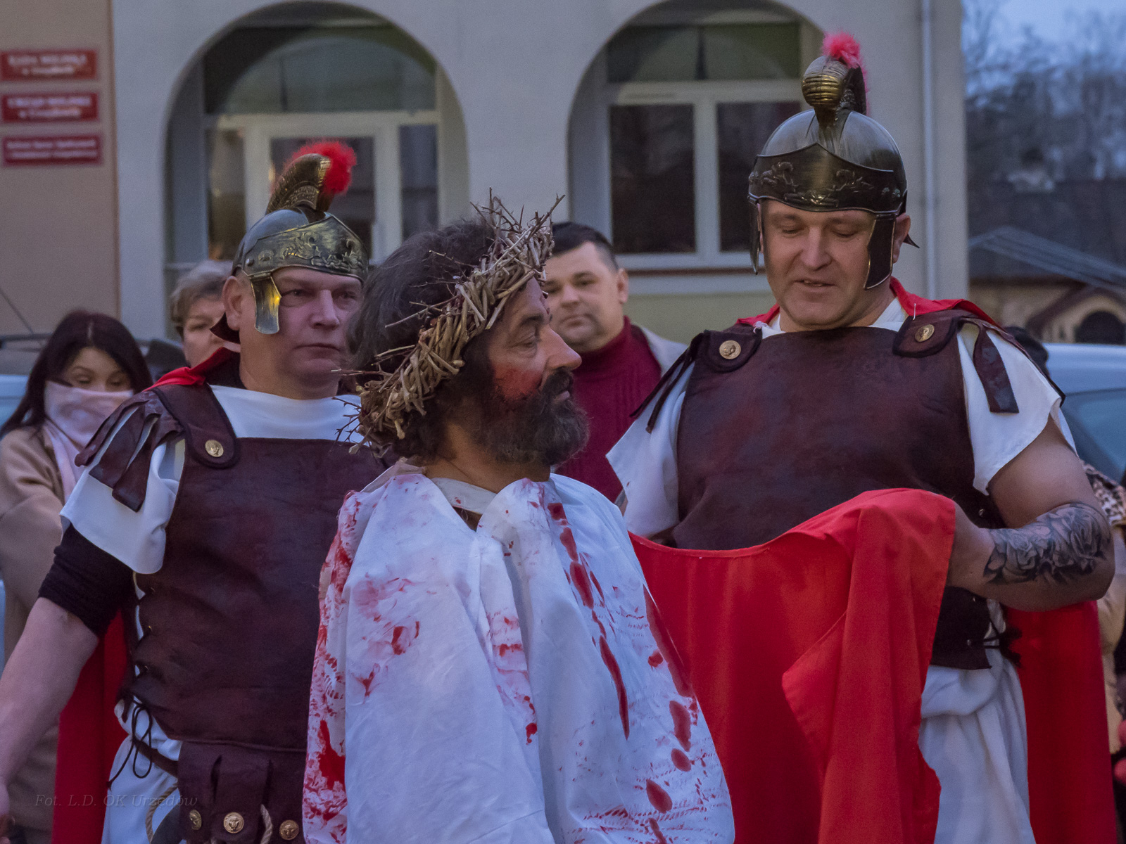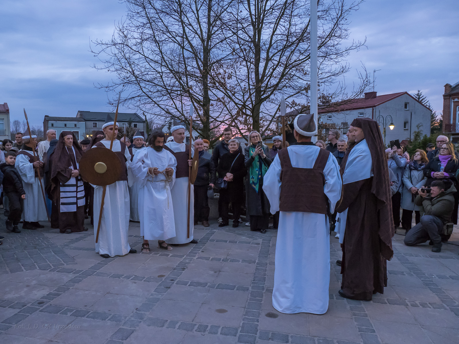 W role ludu jerozolimskiego wcielili się mieszkańcy gminy Urzędów, za co serdecznie dziękujemy. Słowa uznania należą się druhom OSP z terenu gminy. Dzięki ich zaangażowaniu urzędowskie Misterium Męki Pańskiej miało charakter wyjątkowy. Dziękujemy również wszystkim za tak liczny udział.