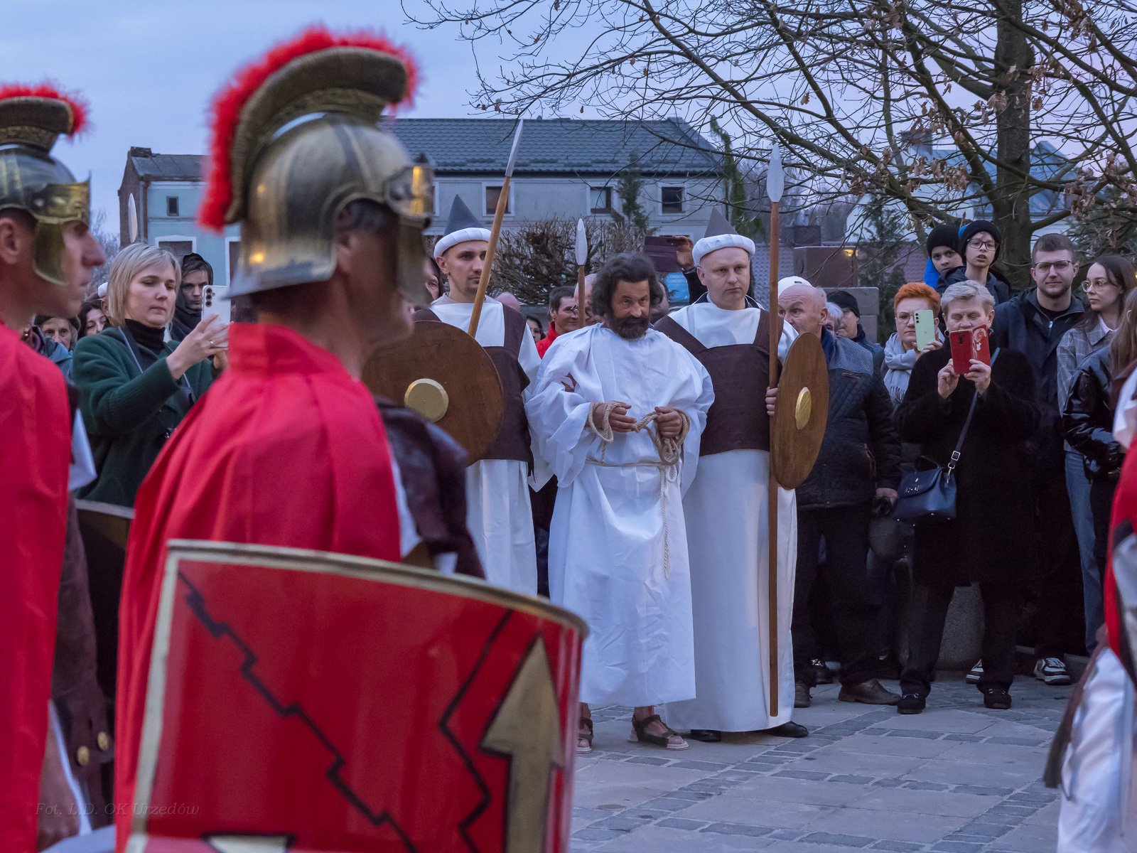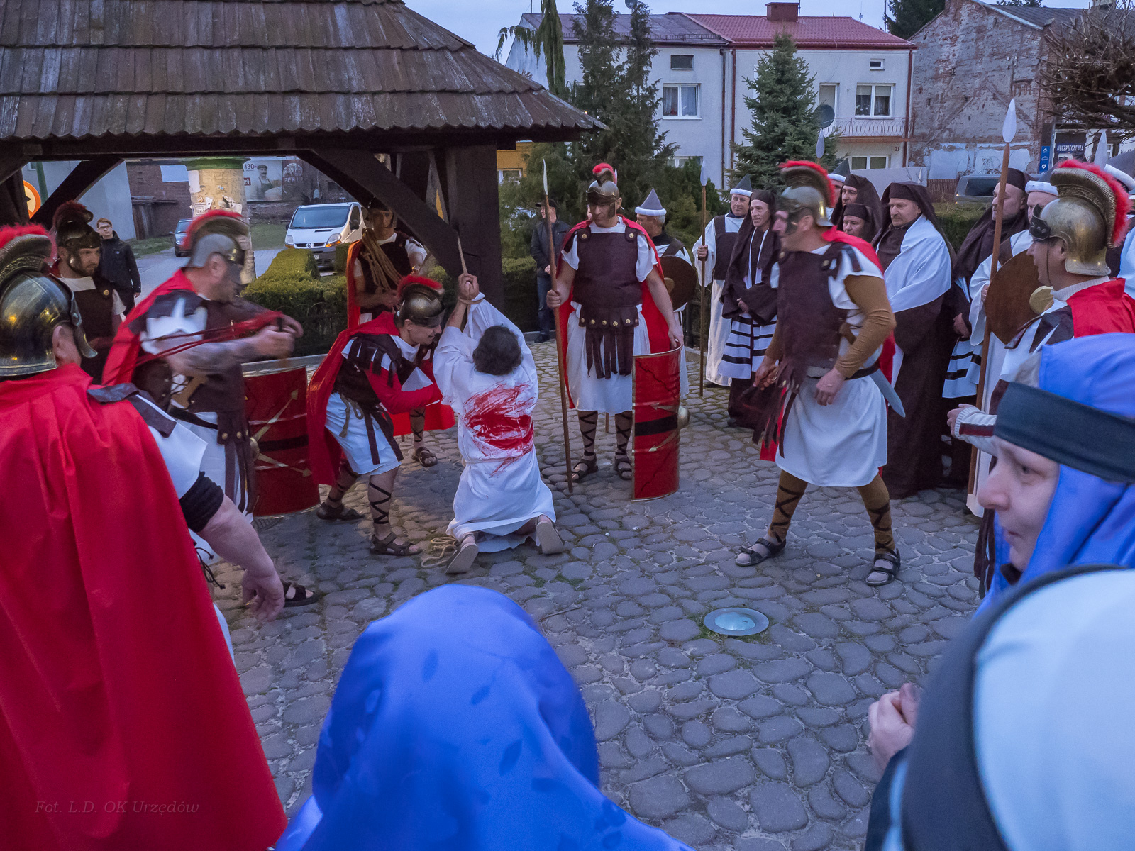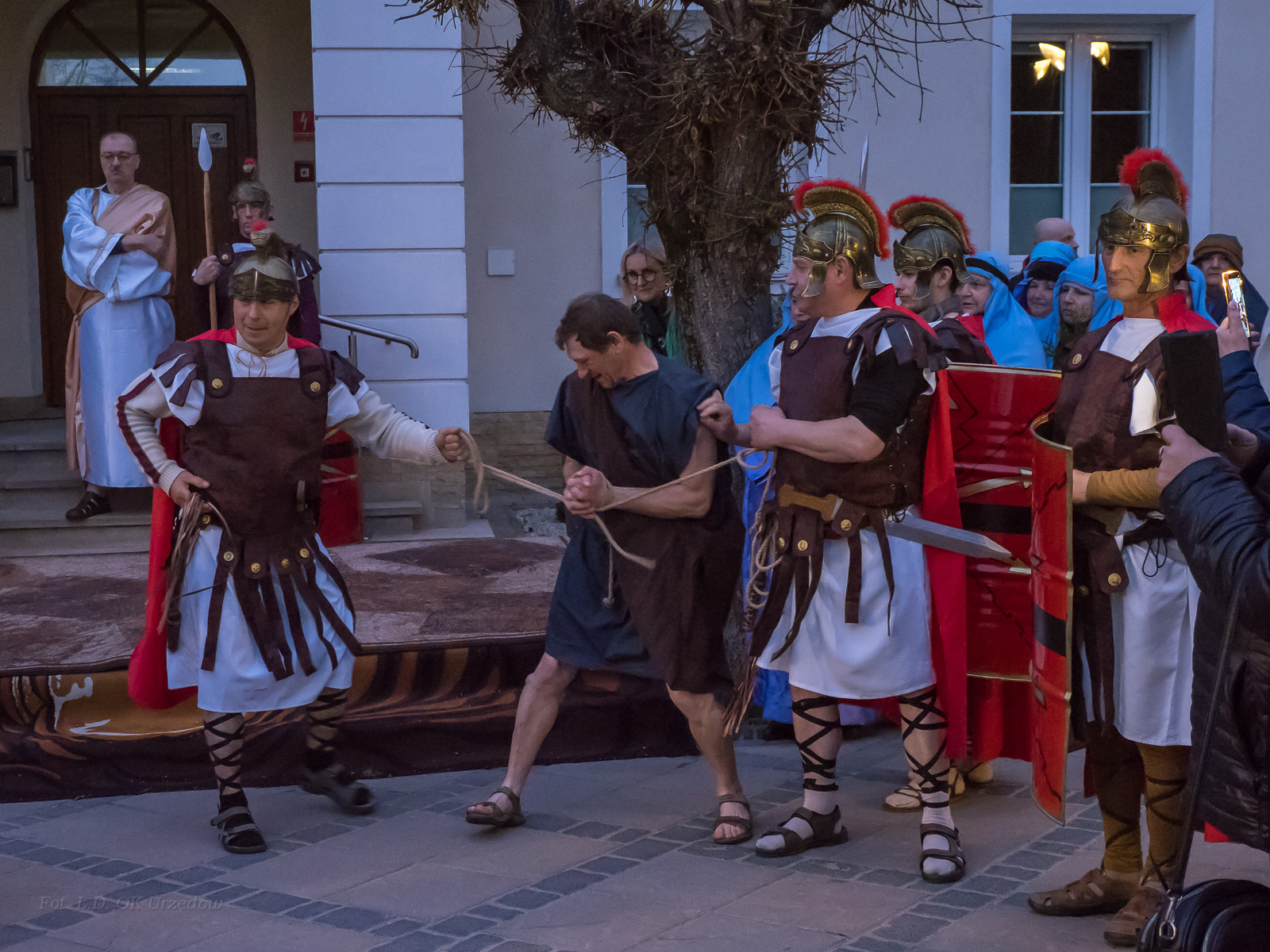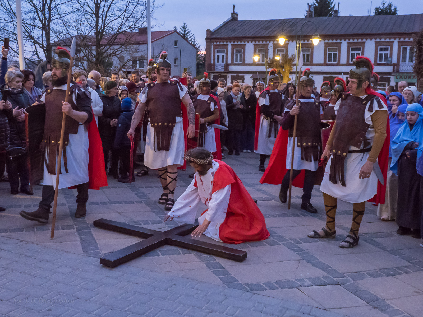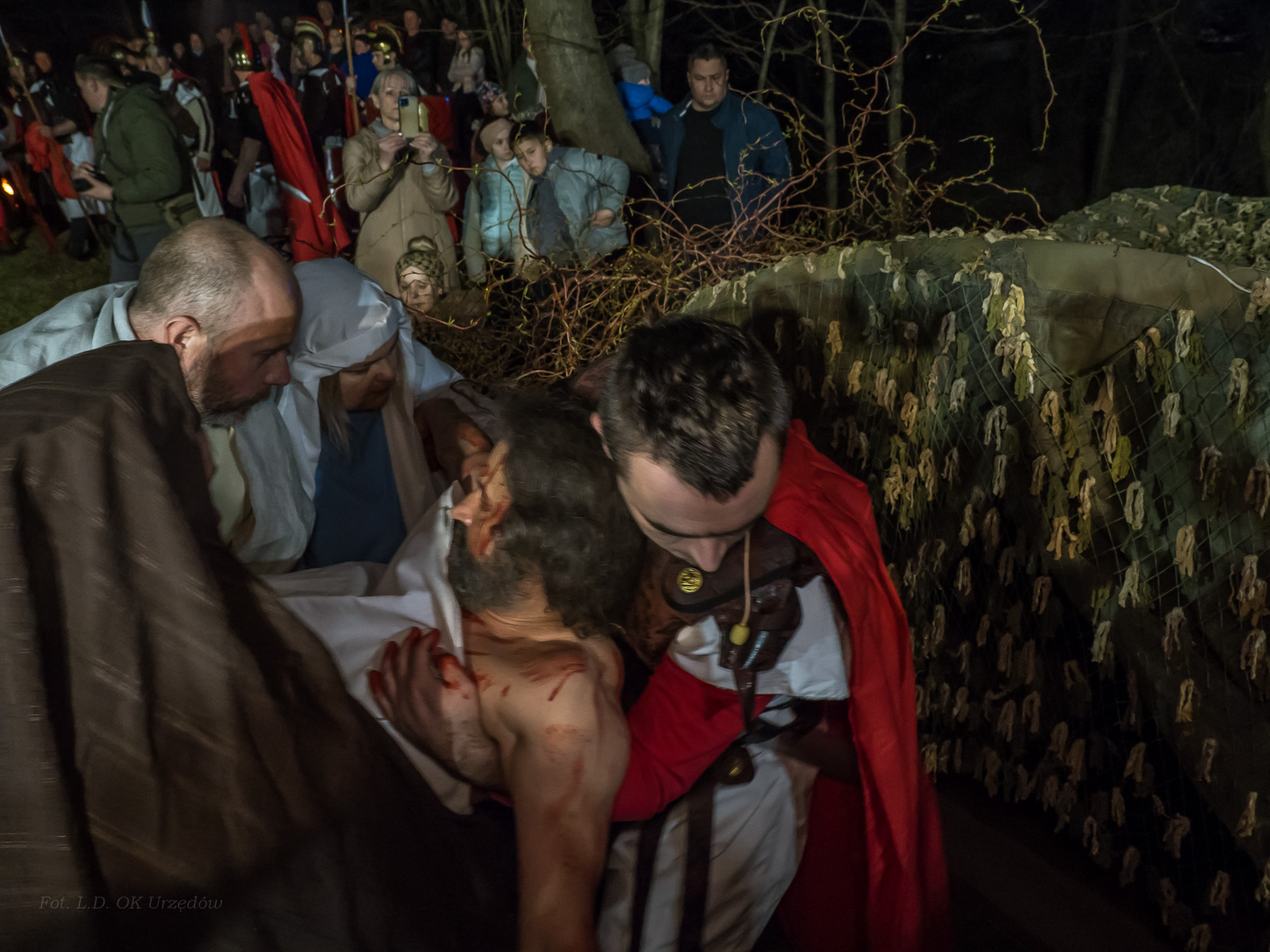 W role ludu jerozolimskiego wcielili się mieszkańcy gminy Urzędów, za co serdecznie dziękujemy. Słowa uznania należą się druhom OSP z terenu gminy. Dzięki ich zaangażowaniu urzędowskie Misterium Męki Pańskiej miało charakter wyjątkowy. Dziękujemy również wszystkim za tak liczny udział.