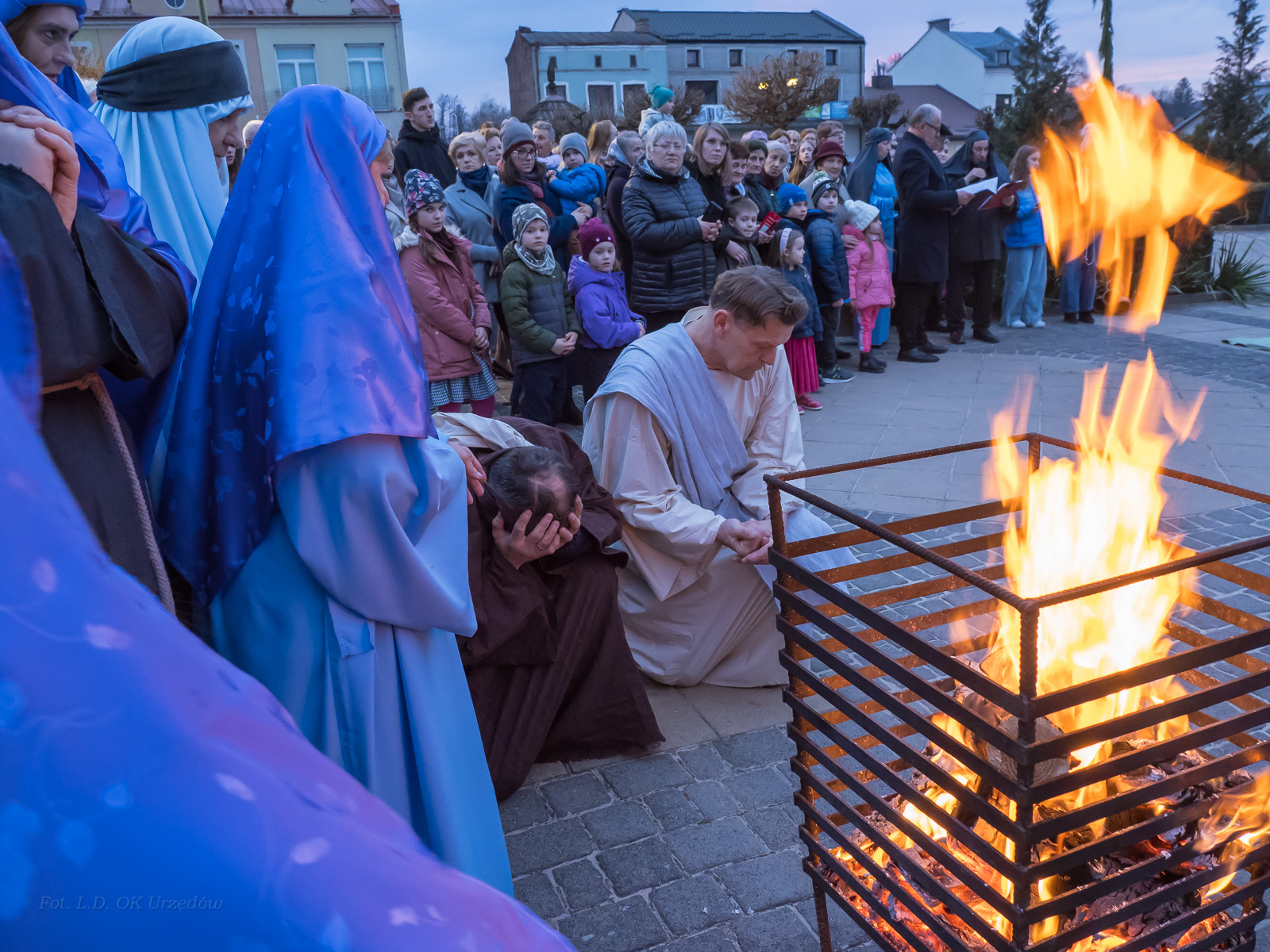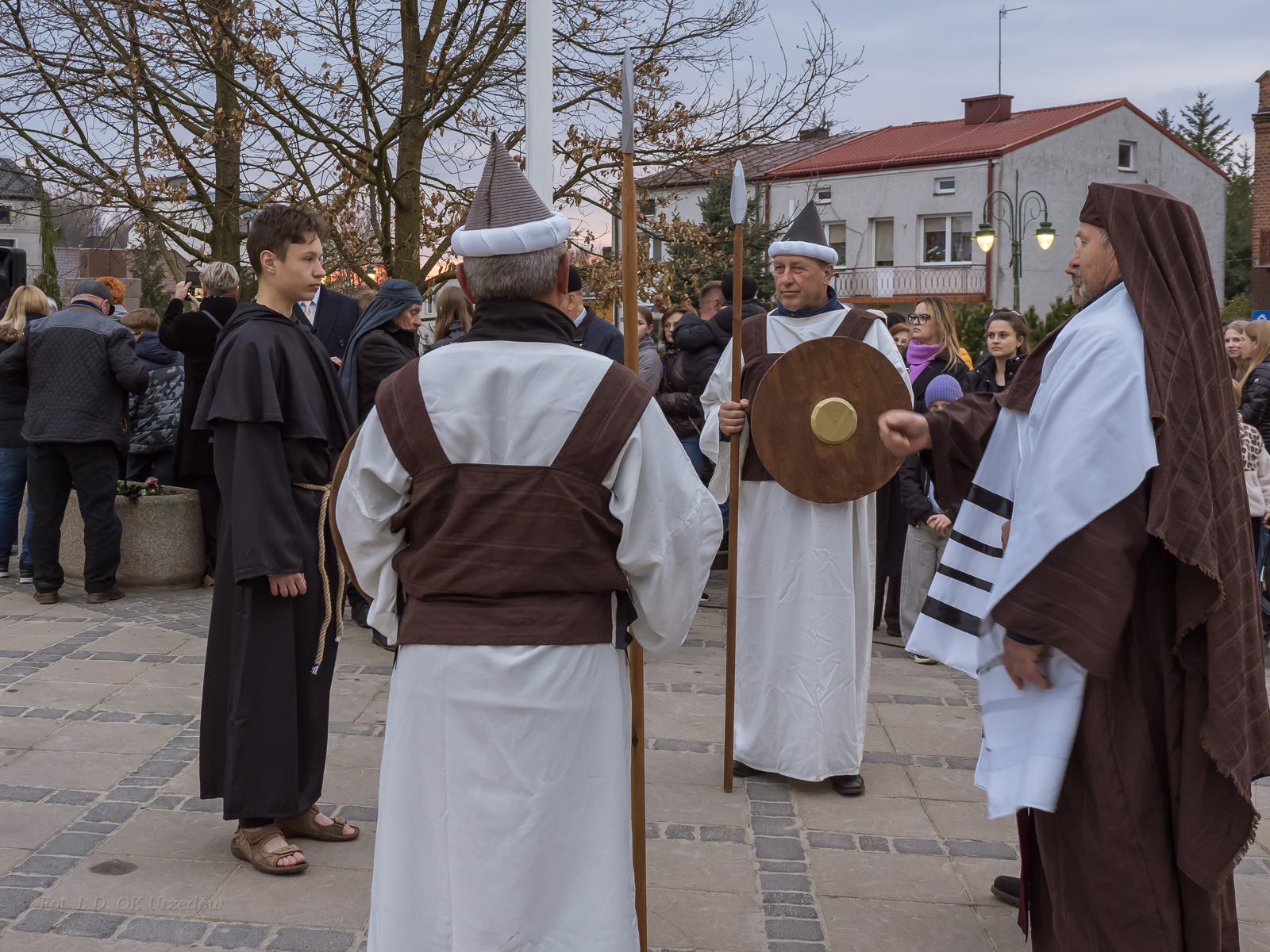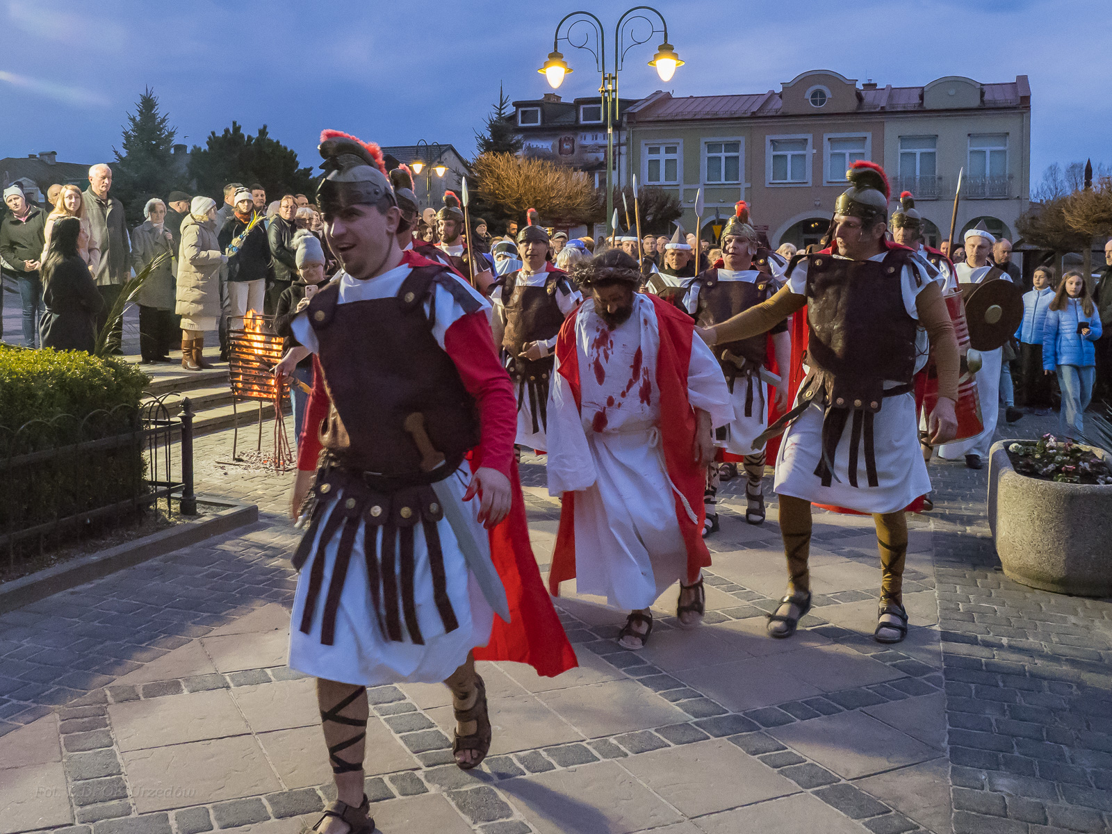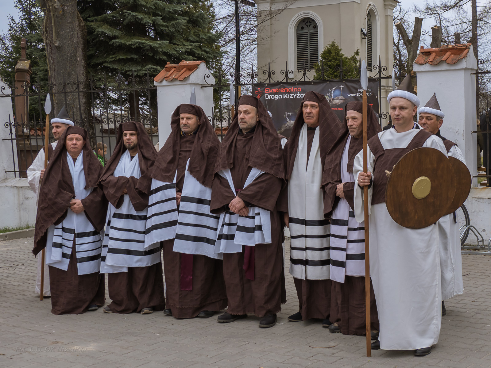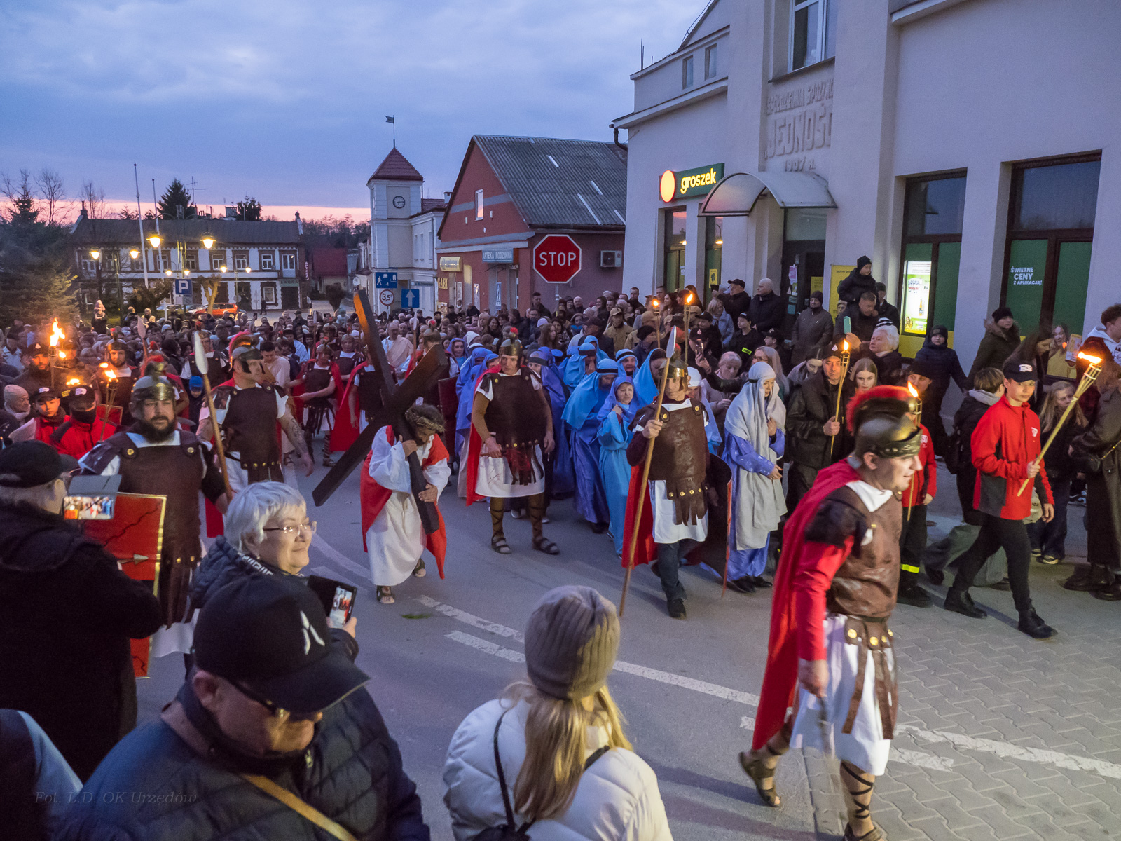 W role ludu jerozolimskiego wcielili się mieszkańcy gminy Urzędów, za co serdecznie dziękujemy. Słowa uznania należą się druhom OSP z terenu gminy. Dzięki ich zaangażowaniu urzędowskie Misterium Męki Pańskiej miało charakter wyjątkowy. Dziękujemy również wszystkim za tak liczny udział.