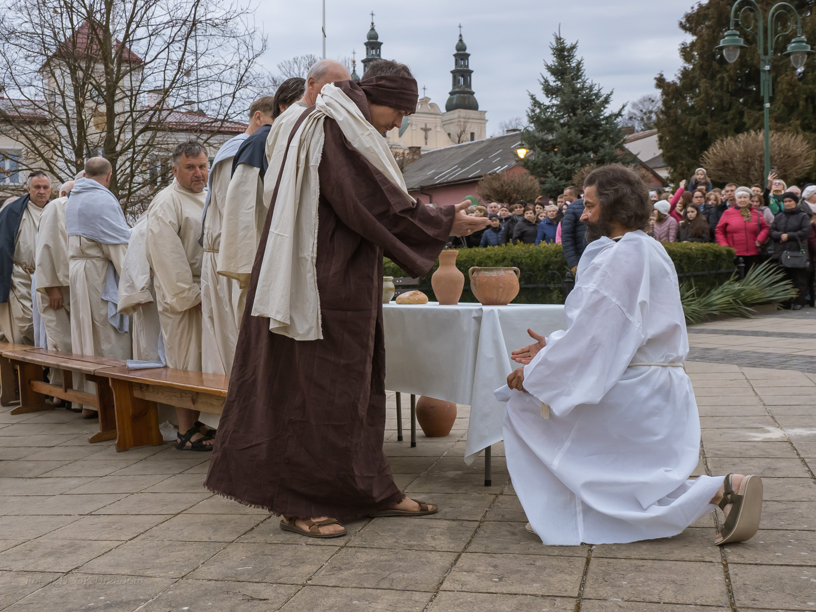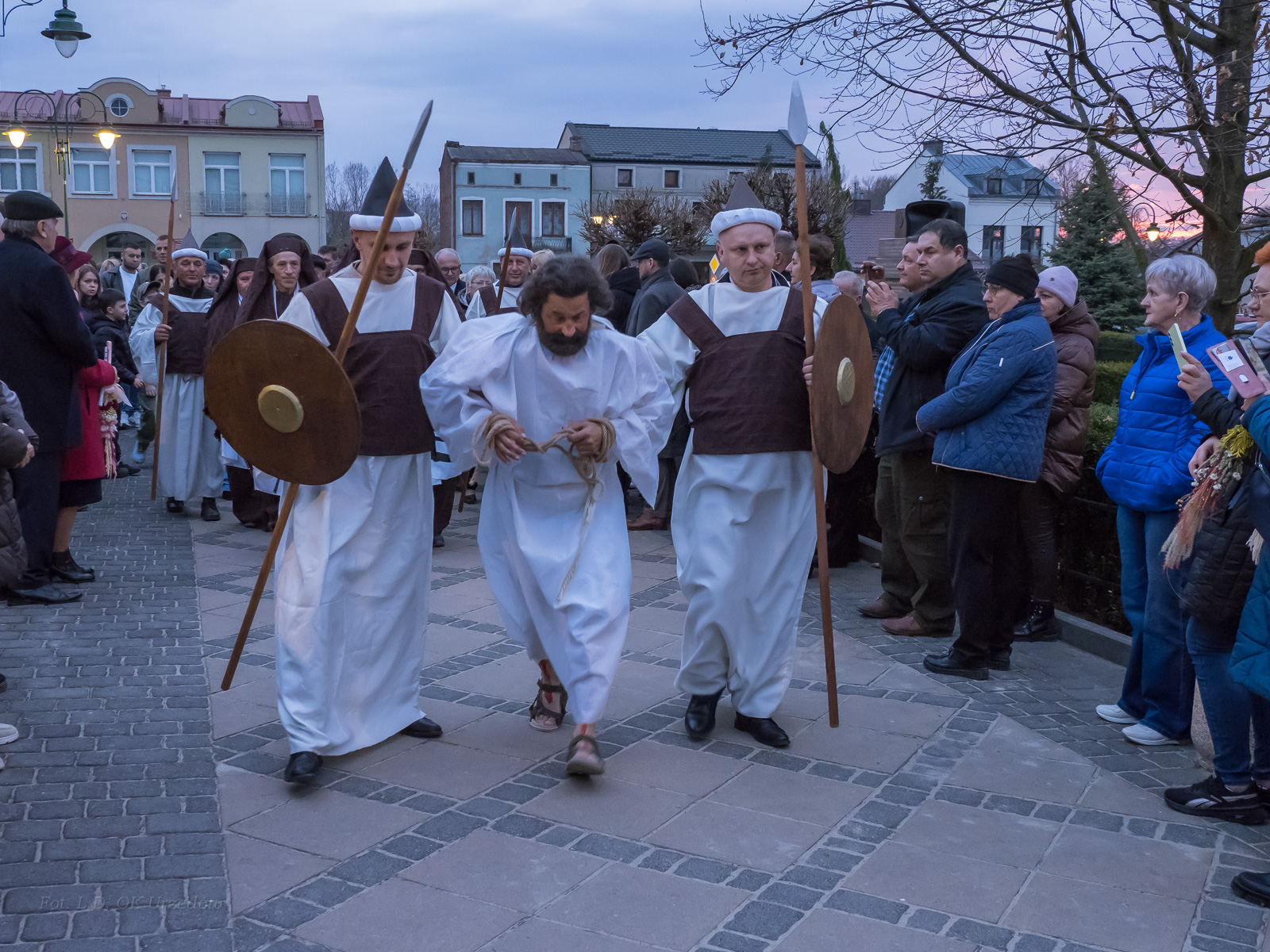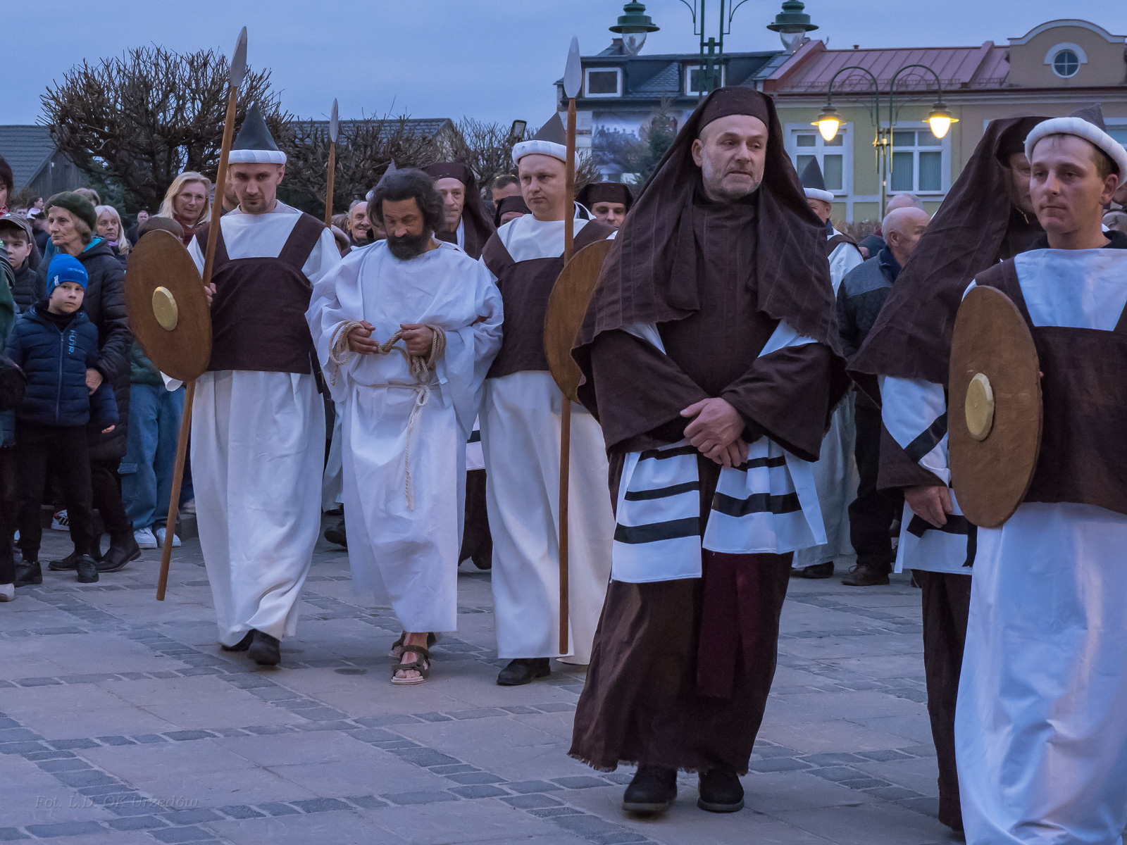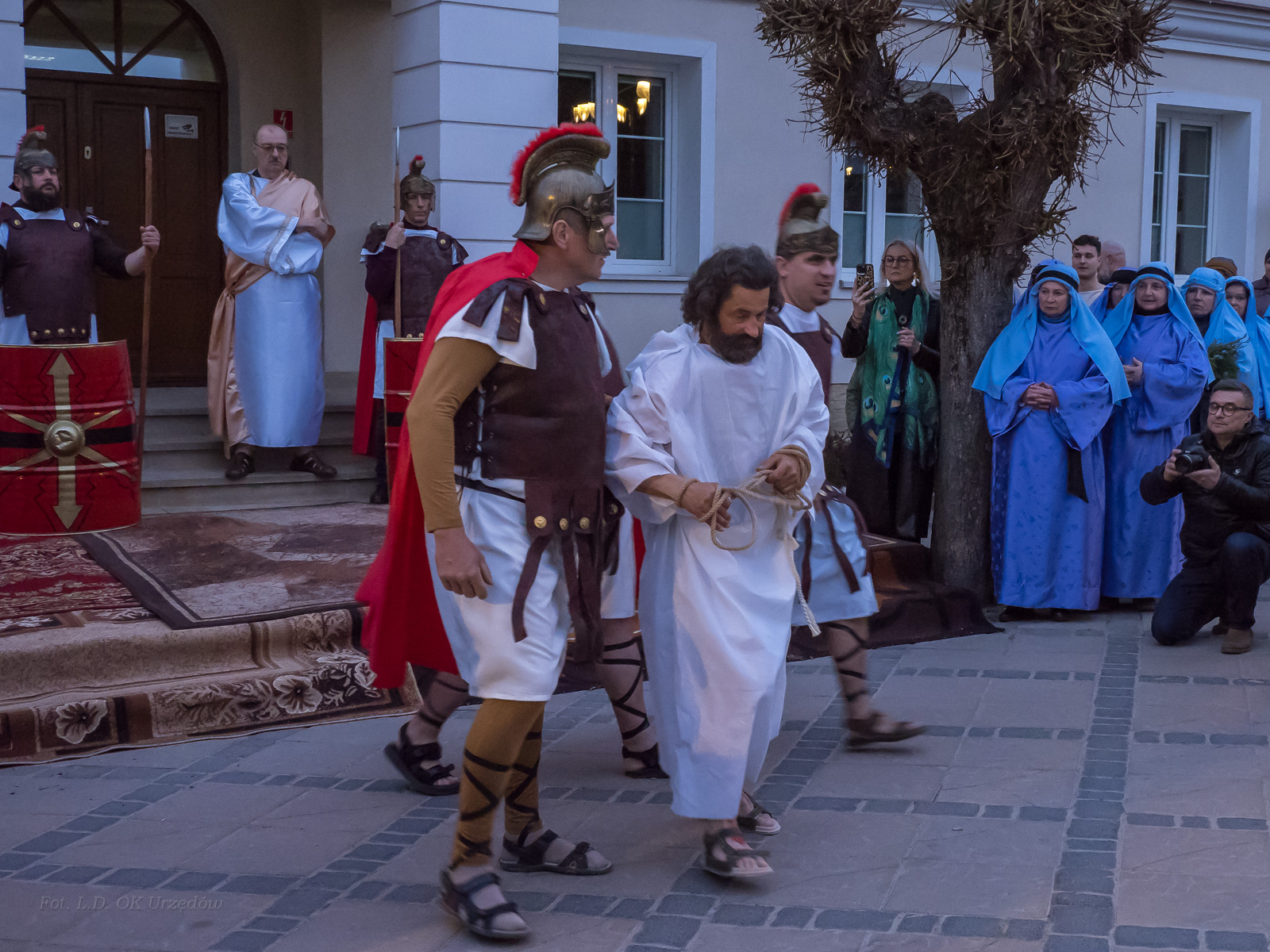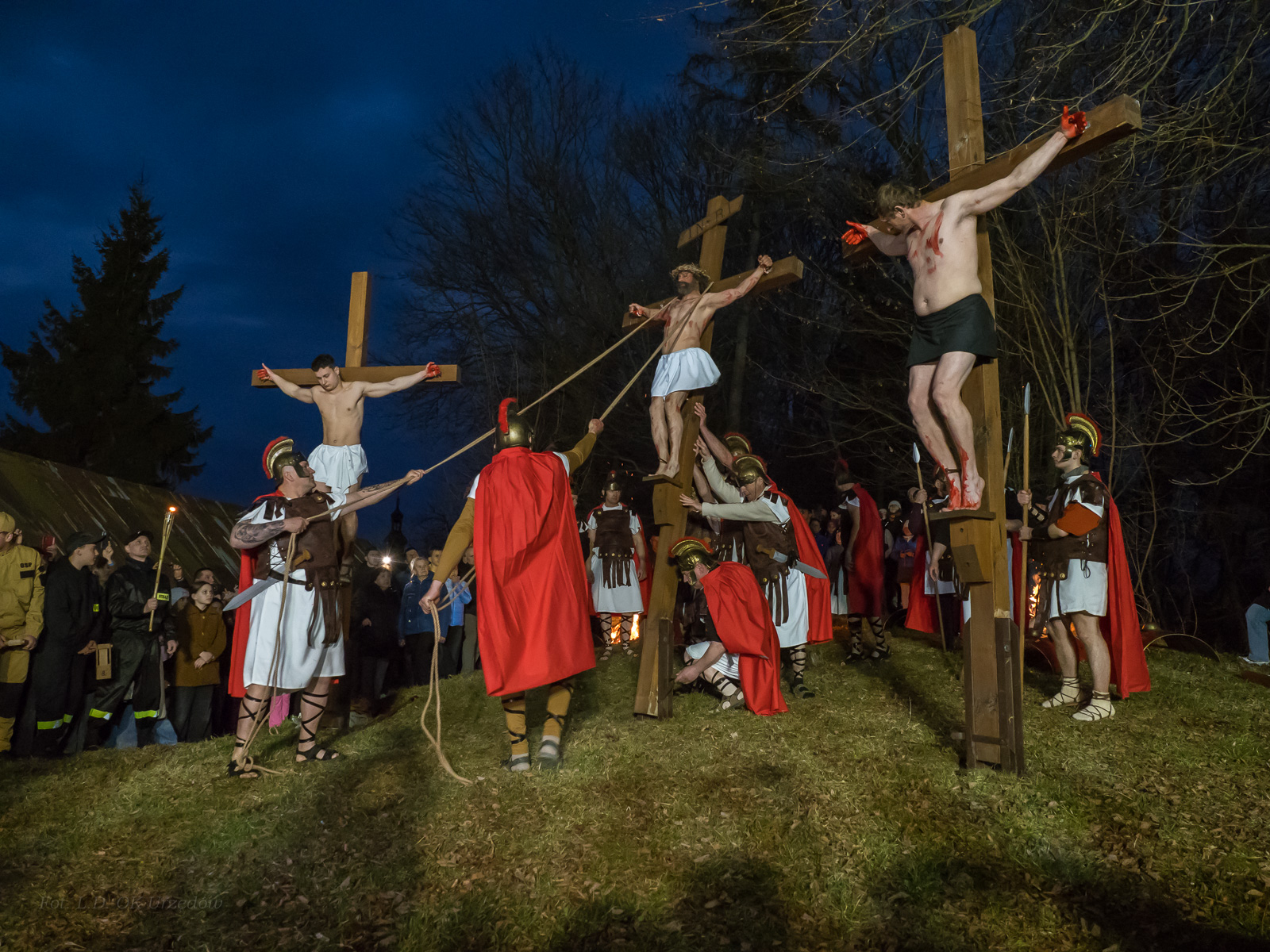 W role ludu jerozolimskiego wcielili się mieszkańcy gminy Urzędów, za co serdecznie dziękujemy. Słowa uznania należą się druhom OSP z terenu gminy. Dzięki ich zaangażowaniu urzędowskie Misterium Męki Pańskiej miało charakter wyjątkowy. Dziękujemy również wszystkim za tak liczny udział.