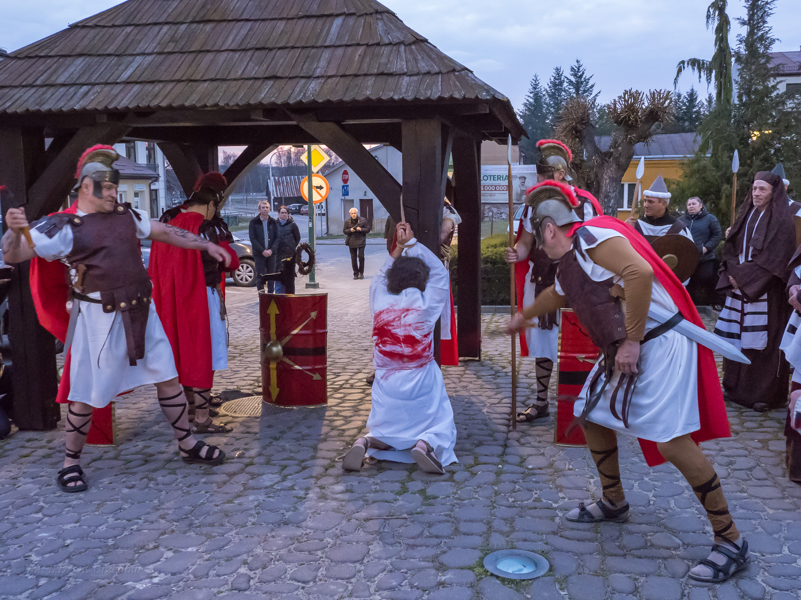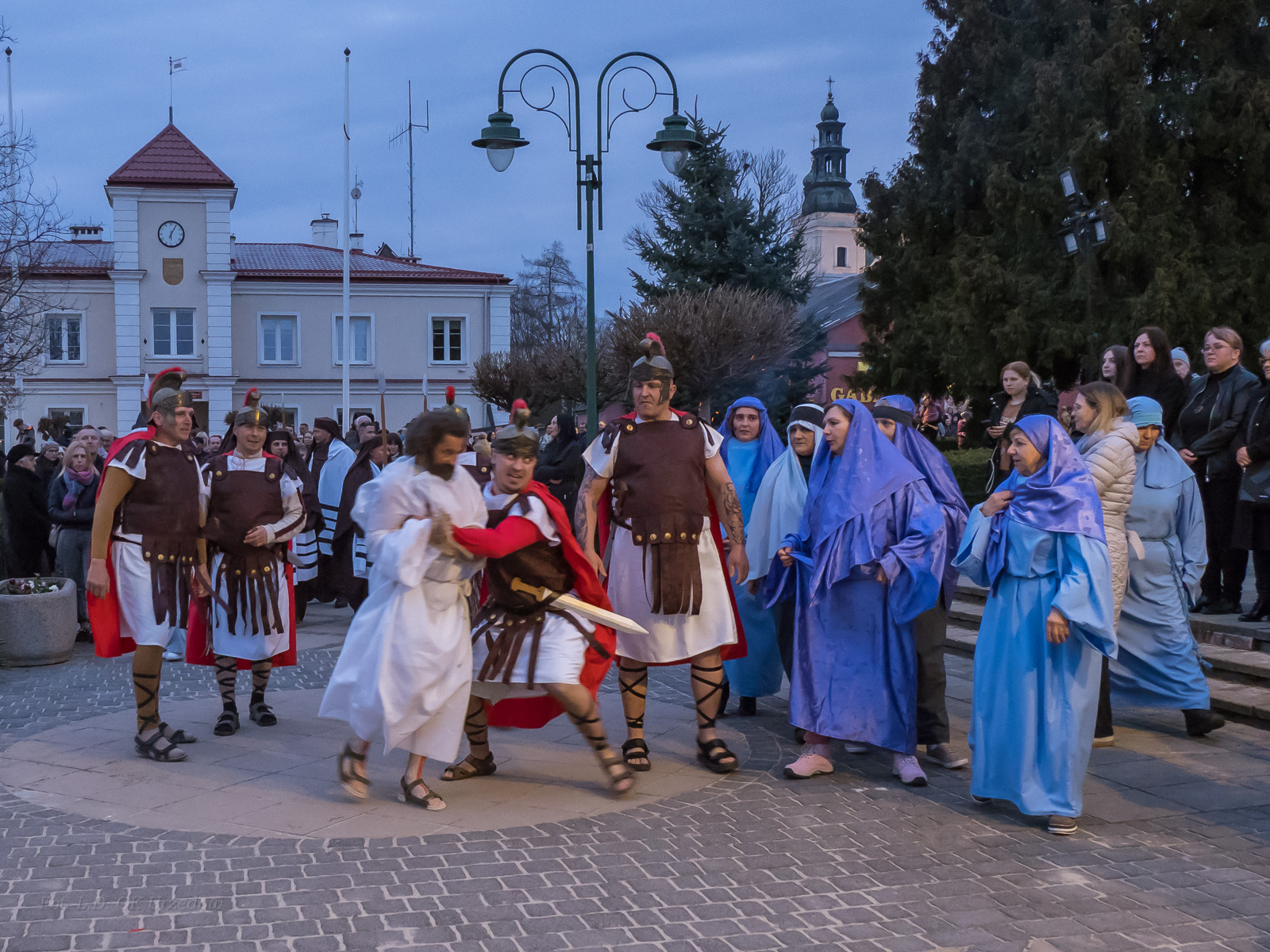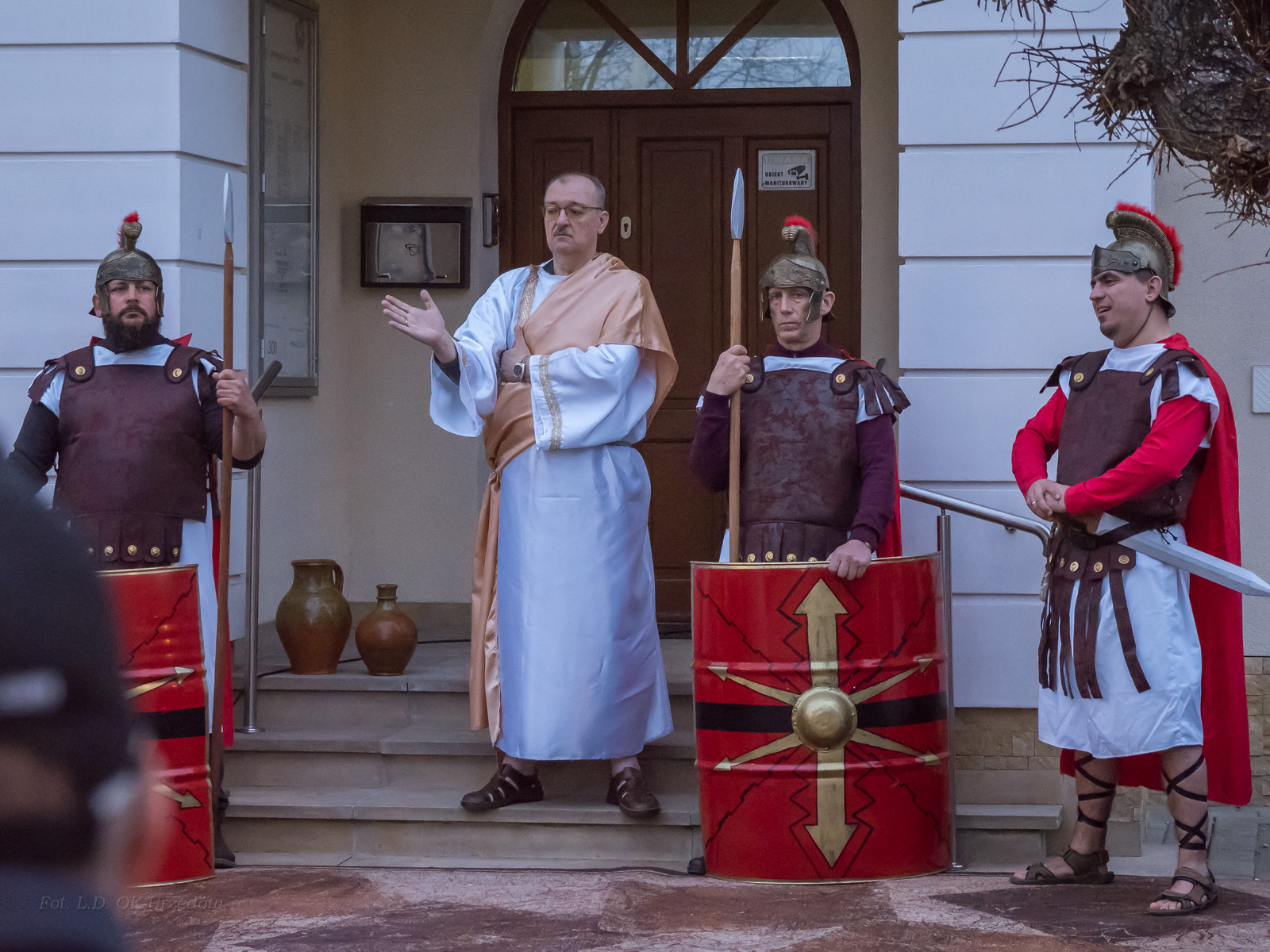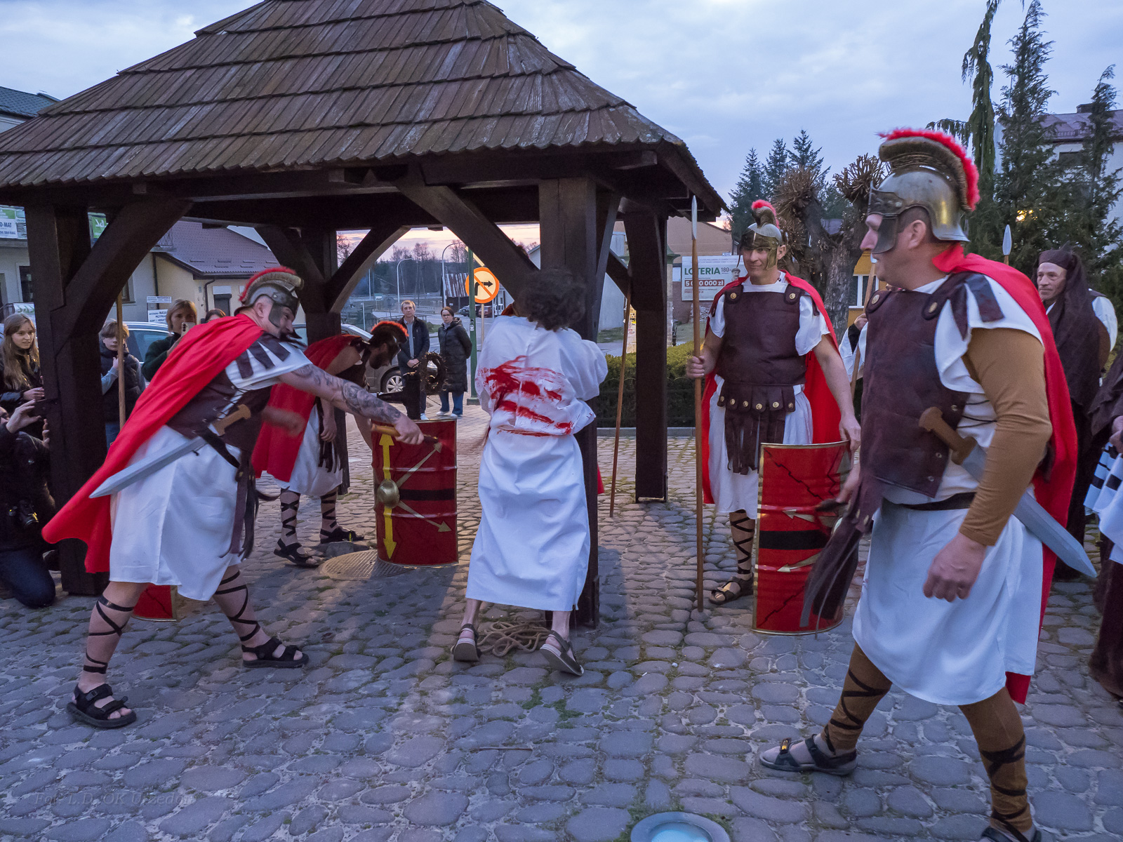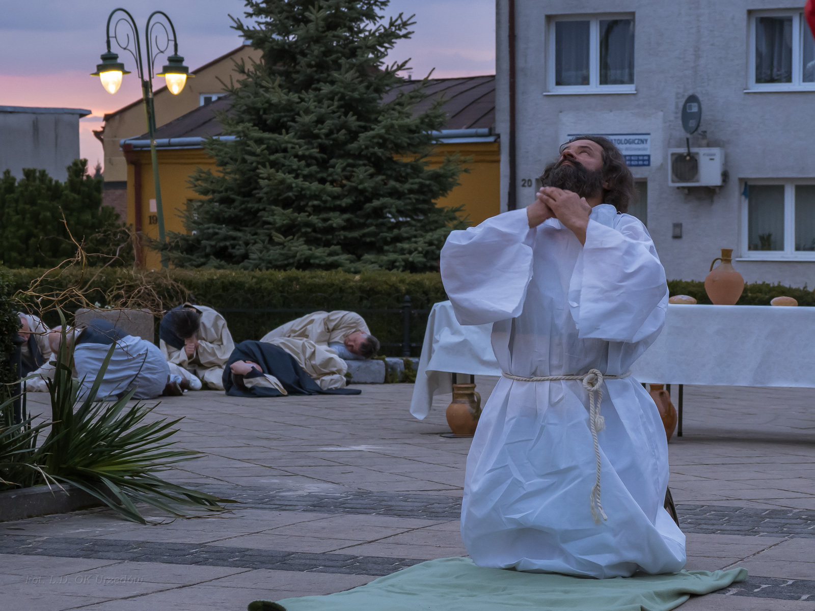 W role ludu jerozolimskiego wcielili się mieszkańcy gminy Urzędów, za co serdecznie dziękujemy. Słowa uznania należą się druhom OSP z terenu gminy. Dzięki ich zaangażowaniu urzędowskie Misterium Męki Pańskiej miało charakter wyjątkowy. Dziękujemy również wszystkim za tak liczny udział.
