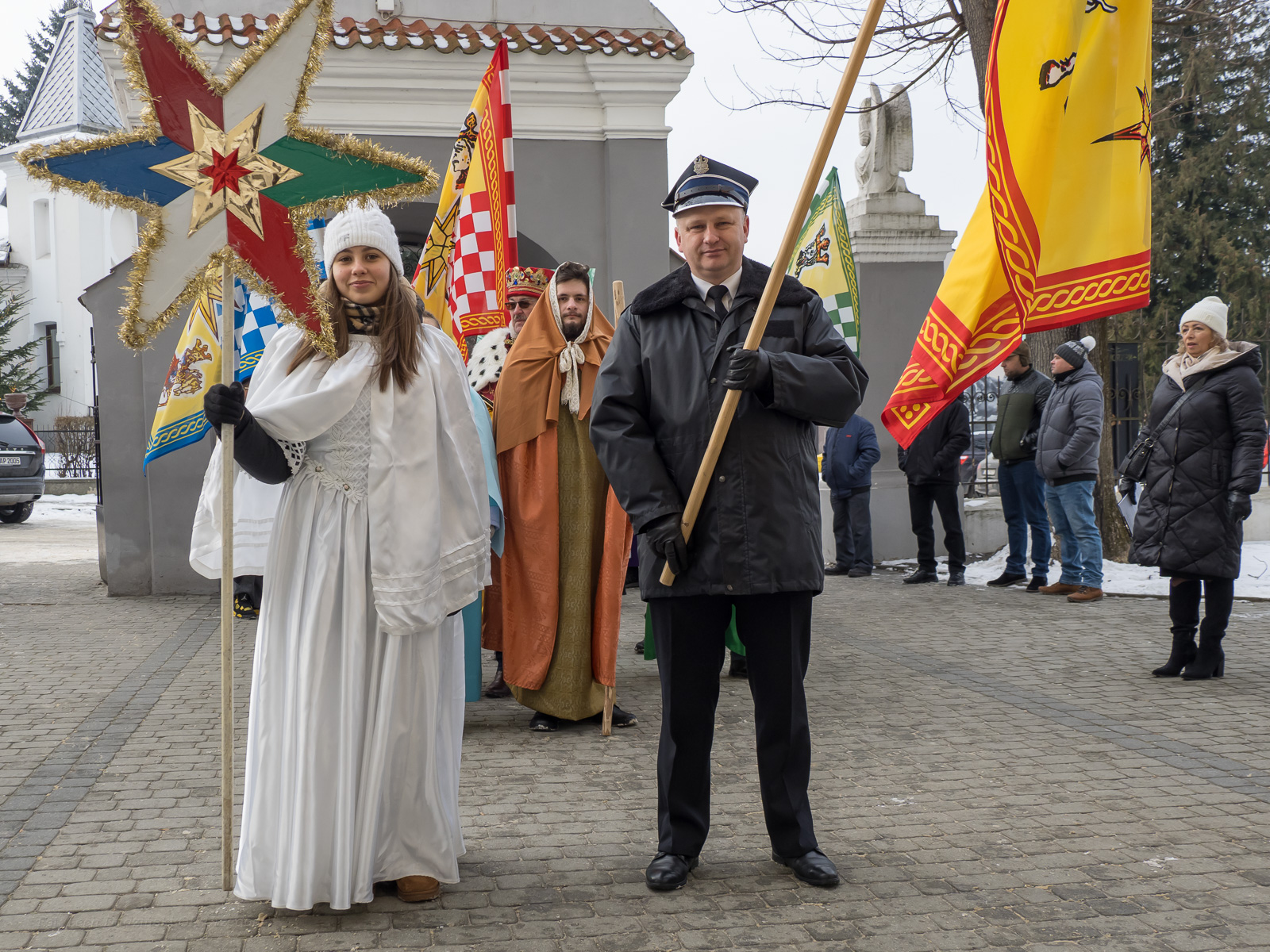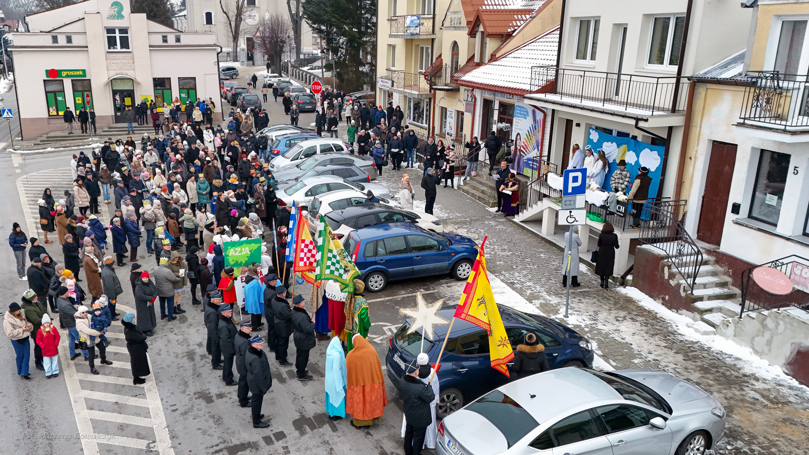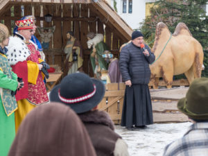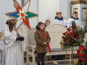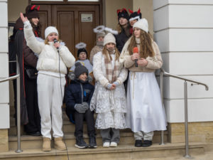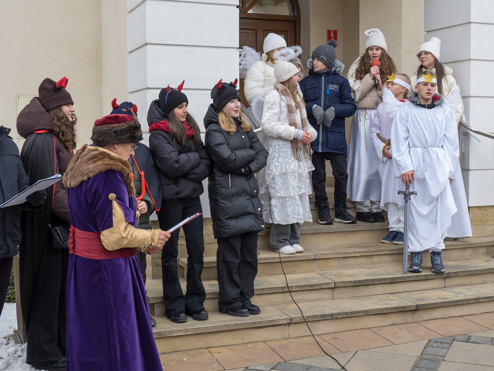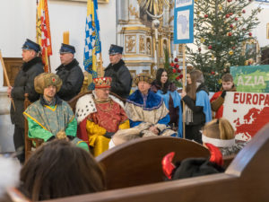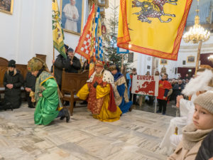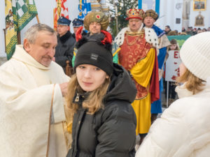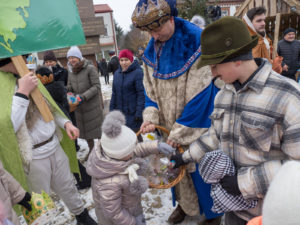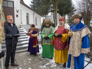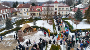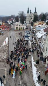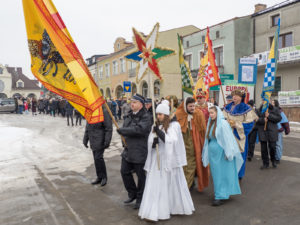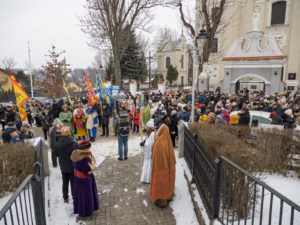 To już po raz dziesiąty mieszkańcy Urzędowa i goście pod patronatem Warszawskiej Fundacji Orszak Trzech Króli poszli w barwnym Orszaku na czele z Józefem i Maryją oraz Trzema Królami nieść dobrą nowinę światu i pokłonić się Jezusowi. Prowadził ich Anioł z gwiazdą. Hasło tegorocznego Orszaku brzmiało: ,,Nadzieją się cieszą”. Uroczystość rozpoczęliśmy mszą świętą pod przewodnictwem ks. dr. Andrzeja Wocha, proboszcza naszej parafii. Dziękujemy wszystkim za tak liczny udział. W rolę Maryi i Józefa wcielili się: Aneta Chudzicka i Kacper Malicki. Trzej Królowie: Król Kacper – Paweł Dąbrowski, burmistrz Urzędowa; Król Baltazar – Adrian Latos, mieszkaniec Urzędowa; Król Melchior – Wojciech Mordziński, mieszkaniec Moniak; Dziękujemy szkołom: ZSO im. Wł. Jagiełły, ZSO im. Orląt Lwowskich, SP w Moniakach, SP w Bobach, SP w Skorczycach, SP w Leszczynie, Przedszkolu Publicznemu oraz nauczycielom i rodzicom za przygotowanie strojów dla dzieci i młodzieży oraz scenek, które były odgrywane w drodze do stajenki. Dziękujemy mieszkańcom i gościom za tak liczny udział. Swoją obecnością zaszczyciła nas Poseł RP Pani Anna Baluch. Dziękujemy Orkiestrze OSP pod kier. kapelmistrza Tadeusza Sabła oraz zespołowi Vox Celestis za tak piękną oprawę muzyczną uroczystości. Grali i śpiewali pięknie pomimo mroźnej pogody. Dziękujemy jednostkom straży z terenu gminy z komendantem Miejsko-Gminnym Wojciechem Krzeczowskim oraz Stowarzyszeniu Miłośników Koni PODKOWA z prezesem Tomaszem Nowaczyńskim za aktywny i piękny udział w wydarzeniu. Dziękujemy: Policji z Komendy Powiatowej w Kraśniku za udział i zadbanie o bezpieczeństwo uczestników, Akcji Katolickiej za współorganizację i pomoc. Bardzo serdecznie dziękujemy Marcinowi Ambrożkiewiczowi, prezesowi OSP Bęczyn za prowadzenie Orszaku. Uczestnicy otrzymali śpiewniki oraz kolorowe korony orszakowe. Natomiast burmistrz Urzędowa tradycyjnie przygotował dla wszystkich słodkie pierniczki z życzeniami