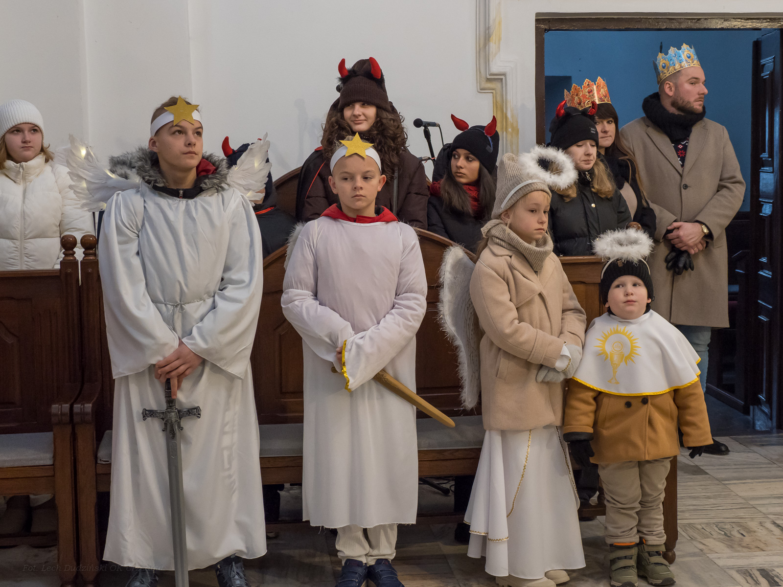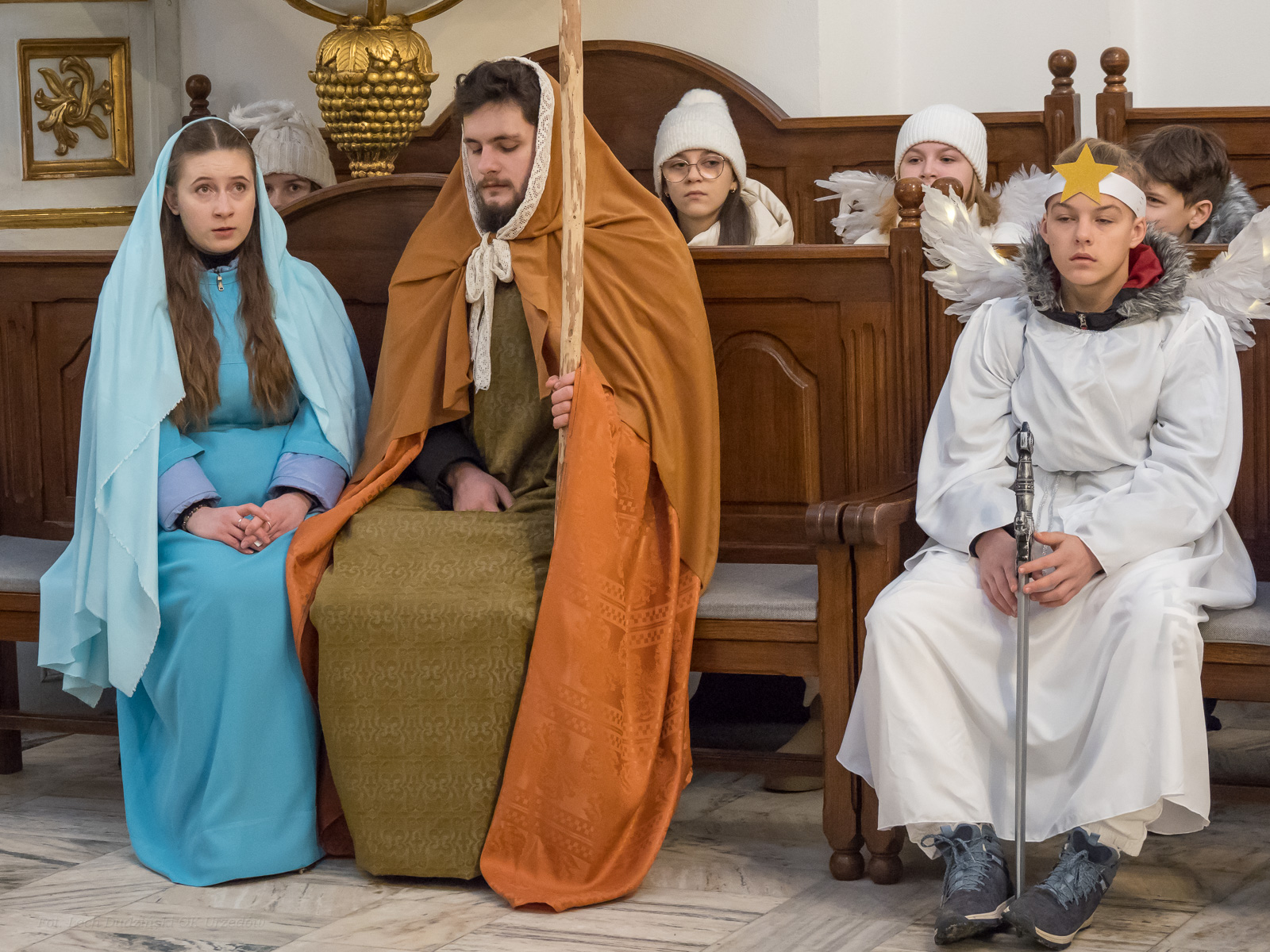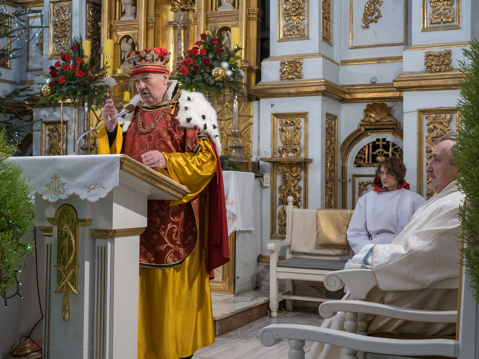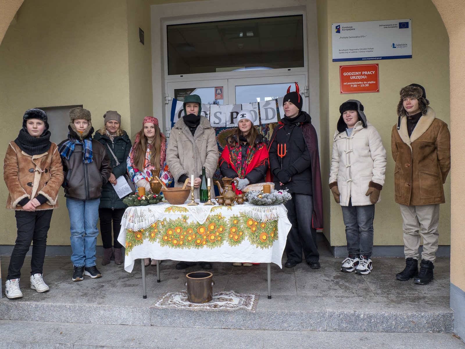 To już po raz dziesiąty mieszkańcy Urzędowa i goście pod patronatem Warszawskiej Fundacji Orszak Trzech Króli poszli w barwnym Orszaku na czele z Józefem i Maryją oraz Trzema Królami nieść dobrą nowinę światu i pokłonić się Jezusowi. Prowadził ich Anioł z gwiazdą. Hasło tegorocznego Orszaku brzmiało: ,,Nadzieją się cieszą”. Uroczystość rozpoczęliśmy mszą świętą pod przewodnictwem ks. dr. Andrzeja Wocha, proboszcza naszej parafii. Dziękujemy wszystkim za tak liczny udział. W rolę Maryi i Józefa wcielili się: Aneta Chudzicka i Kacper Malicki. Trzej Królowie: Król Kacper – Paweł Dąbrowski, burmistrz Urzędowa; Król Baltazar – Adrian Latos, mieszkaniec Urzędowa; Król Melchior – Wojciech Mordziński, mieszkaniec Moniak; Dziękujemy szkołom: ZSO im. Wł. Jagiełły, ZSO im. Orląt Lwowskich, SP w Moniakach, SP w Bobach, SP w Skorczycach, SP w Leszczynie, Przedszkolu Publicznemu oraz nauczycielom i rodzicom za przygotowanie strojów dla dzieci i młodzieży oraz scenek, które były odgrywane w drodze do stajenki. Dziękujemy mieszkańcom i gościom za tak liczny udział. Swoją obecnością zaszczyciła nas Poseł RP Pani Anna Baluch. Dziękujemy Orkiestrze OSP pod kier. kapelmistrza Tadeusza Sabła oraz zespołowi Vox Celestis za tak piękną oprawę muzyczną uroczystości. Grali i śpiewali pięknie pomimo mroźnej pogody. Dziękujemy jednostkom straży z terenu gminy z komendantem Miejsko-Gminnym Wojciechem Krzeczowskim oraz Stowarzyszeniu Miłośników Koni PODKOWA z prezesem Tomaszem Nowaczyńskim za aktywny i piękny udział w wydarzeniu. Dziękujemy: Policji z Komendy Powiatowej w Kraśniku za udział i zadbanie o bezpieczeństwo uczestników, Akcji Katolickiej za współorganizację i pomoc. Bardzo serdecznie dziękujemy Marcinowi Ambrożkiewiczowi, prezesowi OSP Bęczyn za prowadzenie Orszaku. Uczestnicy otrzymali śpiewniki oraz kolorowe korony orszakowe. Natomiast burmistrz Urzędowa tradycyjnie przygotował dla wszystkich słodkie pierniczki z życzeniami